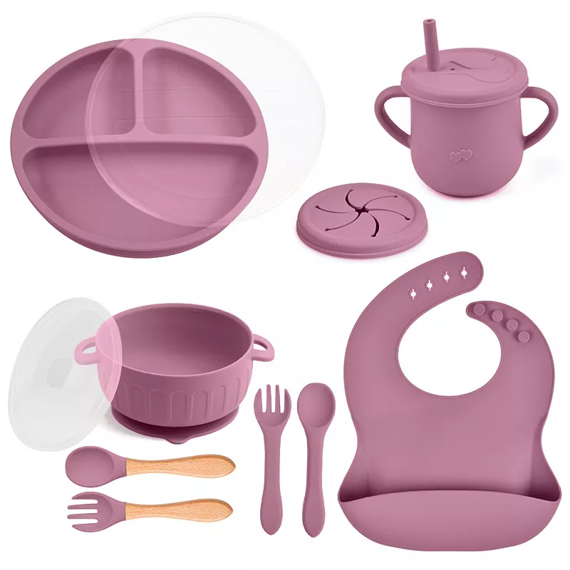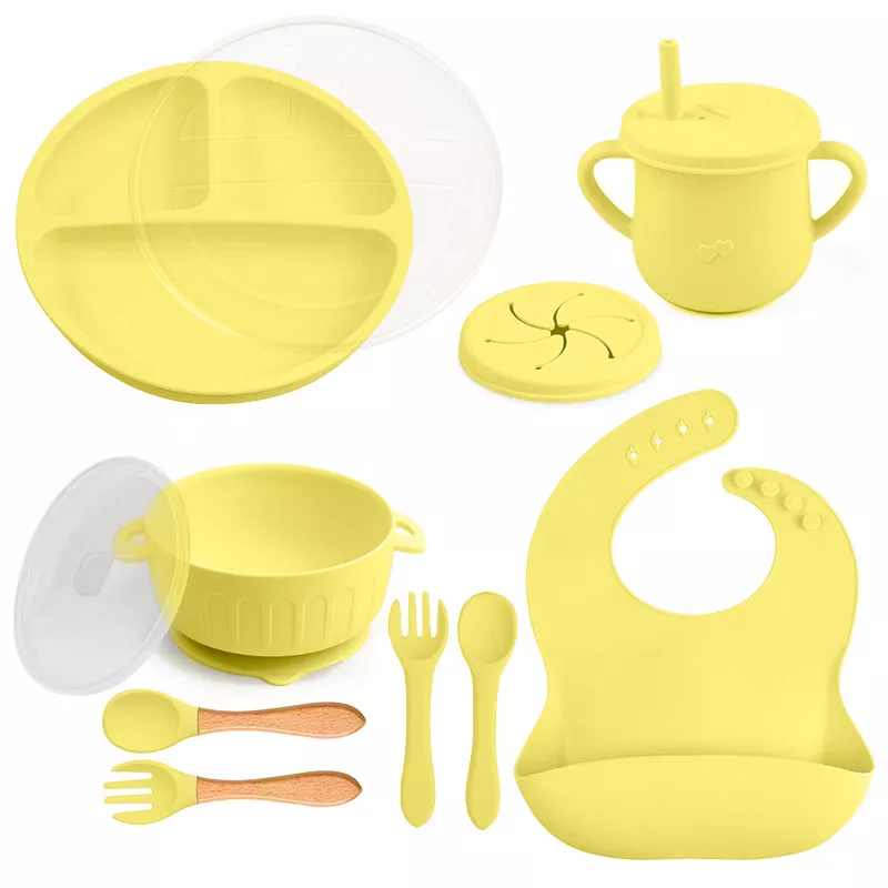 10-Piece Silicone Baby Feeding Set with Plates, Sippy Cup, Utensils & Bib