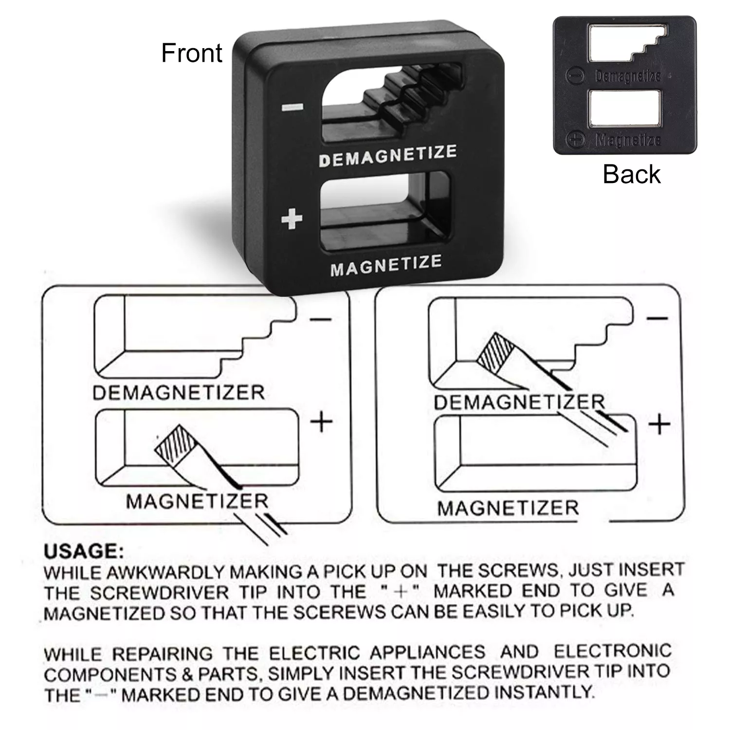 Say goodbye to frustrating slips and lost screws with this professional 2-in-1 Magnetizer Demagnetizer. Designed to quickly magnetize or demagnetize your screwdriver, drill bits, wrenches, tweezers, and other steel hand tools, this compact tool is a must-have for any DIY enthusiast or professional. Simply slide your tool through the center hole to magnetize it, making it easier to pick up screws and small metal parts effortlessly. When working with sensitive electronic components, just slide your tool through the side slot to demagnetize and avoid damage from unwanted magnetic fields.