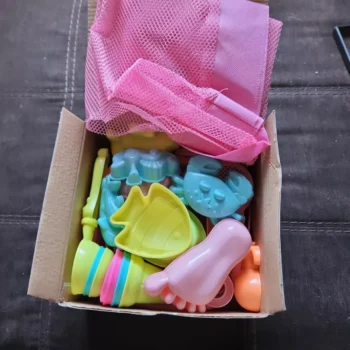 • Complete 20-piece set: Includes a collapsible pink bucket, 3 ice cream cones with lids, 1 scoop, 1 sand shovel, 1 slotted scoop, 12 colorful sand molds (animals and sea creatures), a reusable mesh beach bag, and a sturdy packing box.
