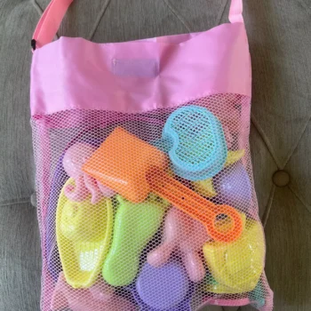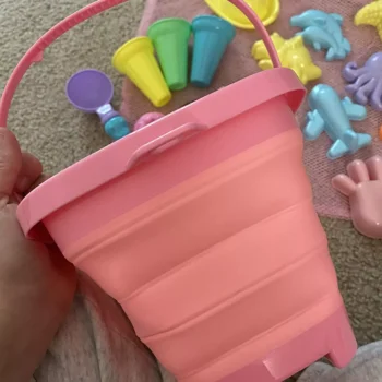 • Collapsible bucket & mesh bag: The flexible silicone bucket folds flat for easy storage, and the mesh bag allows sand and water to drain quickly, keeping toys clean and dry.
