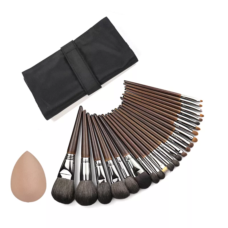 • 24-piece makeup brush set with a combination of synthetic and natural hair for versatile application.