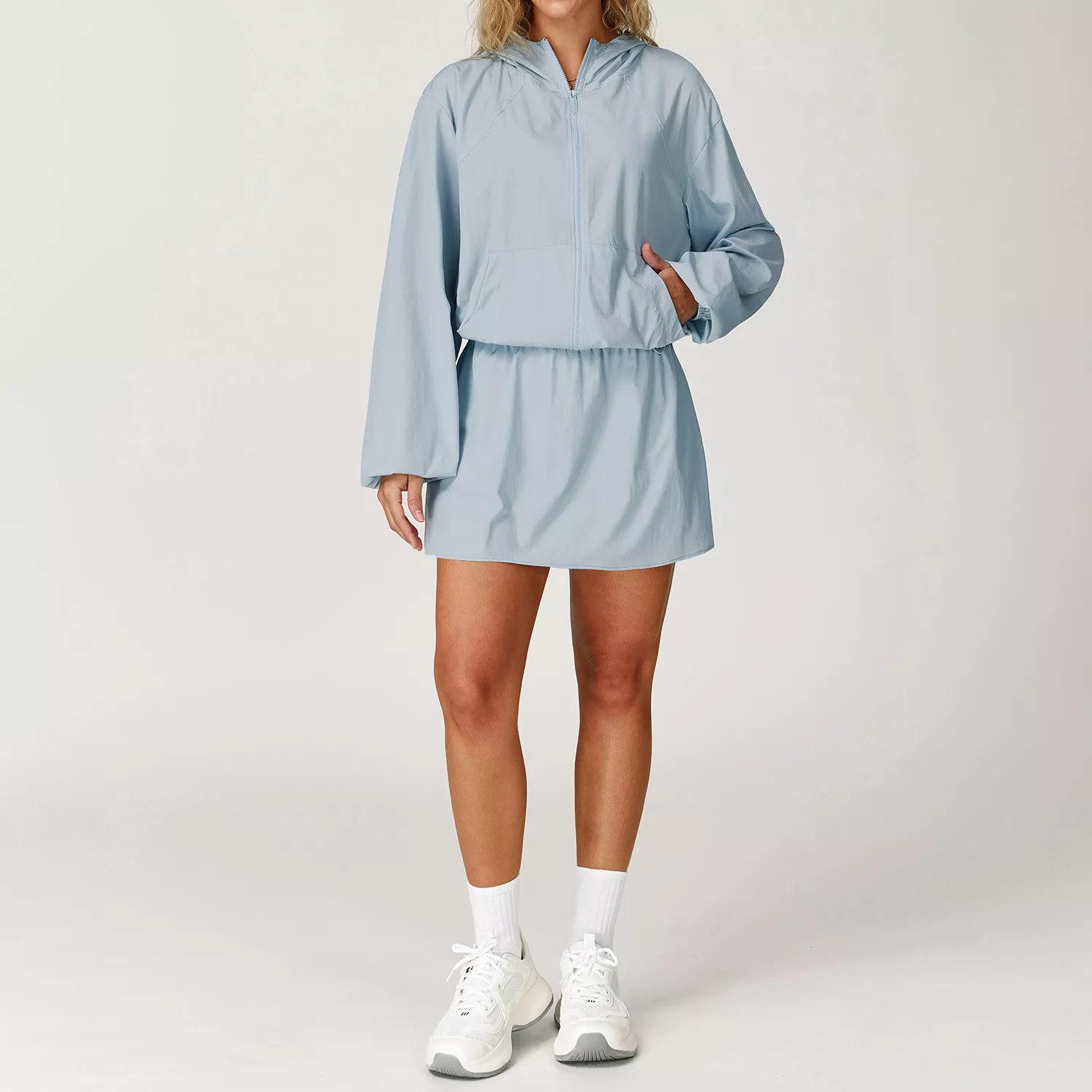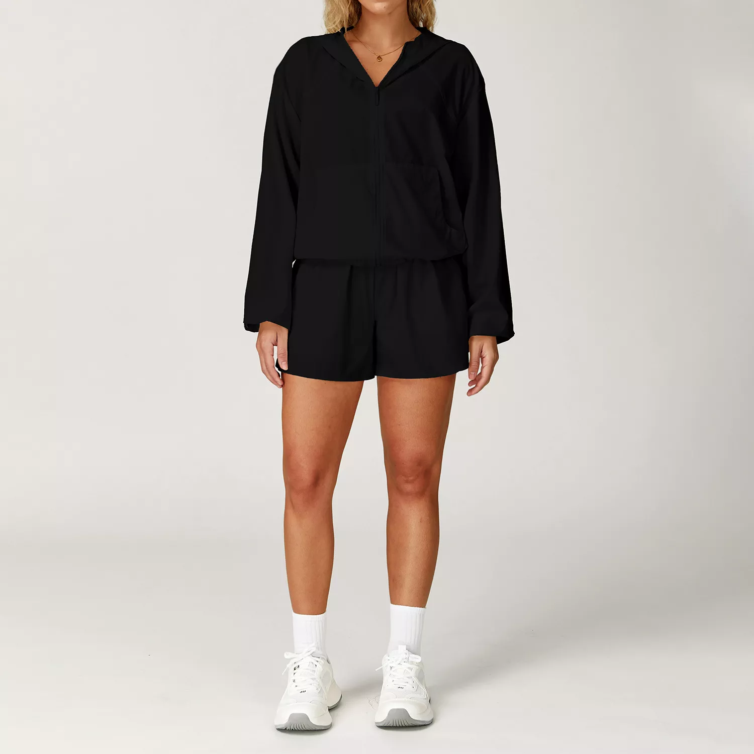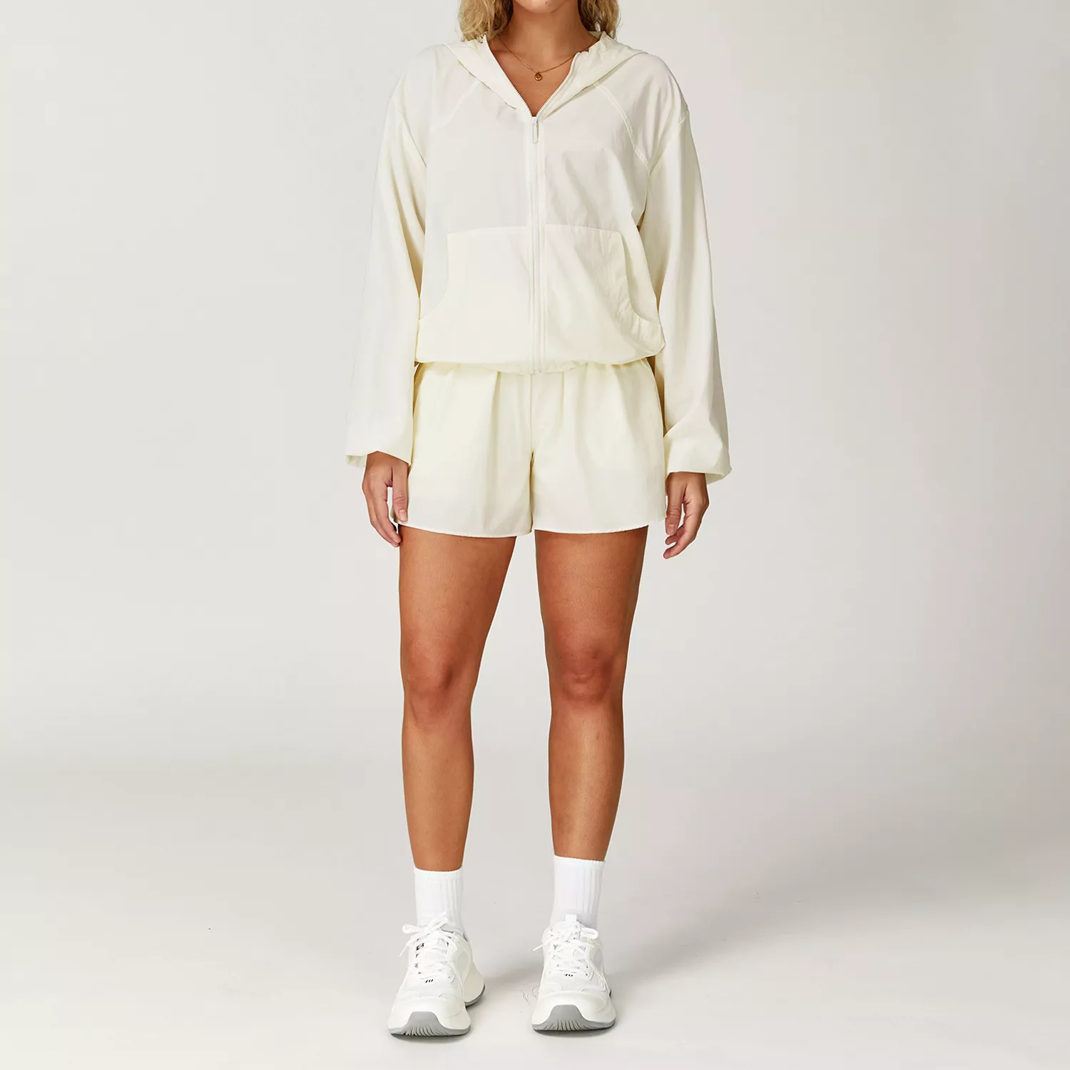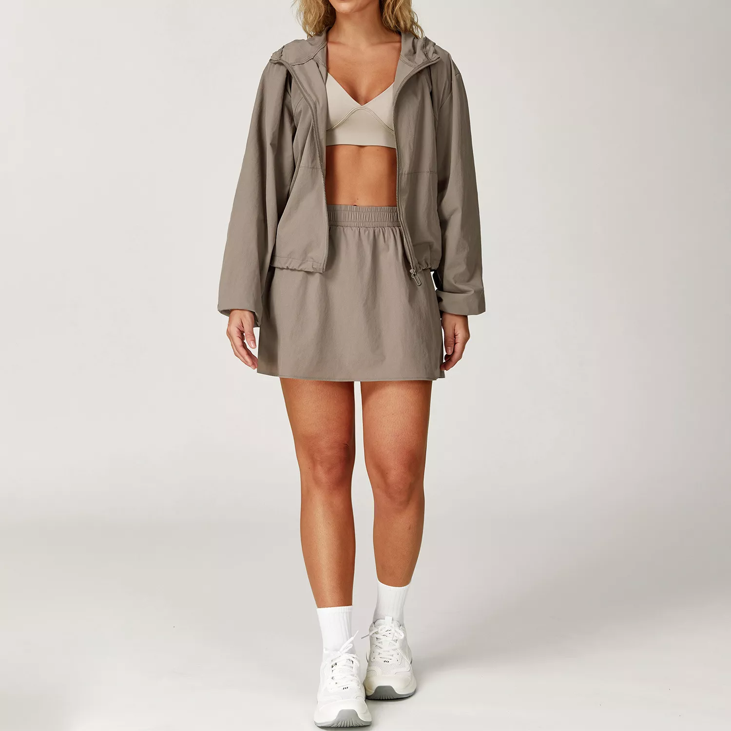 This jacket set is just amazing! Lightweight, breathable and quick drying - perfect for my yoga sessions. The hood adds a stylish touch too. Love it!