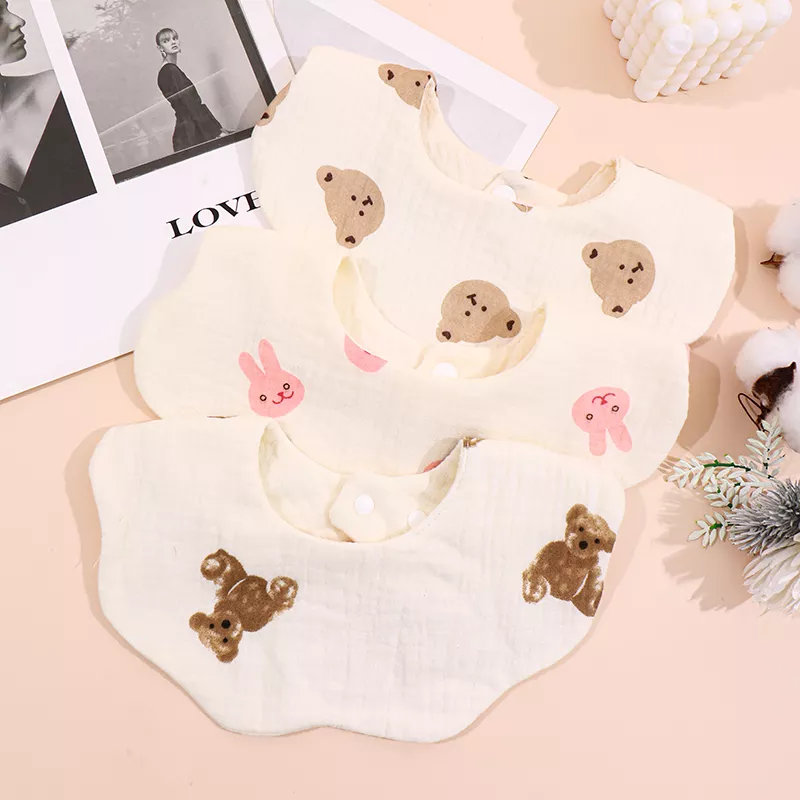 Add these soft cotton gauze baby bibs with charming cartoon prints to your baby essentials. They are designed to keep your infant comfortable, clean, and looking cute — a perfect blend of function and style for every parent and little one.