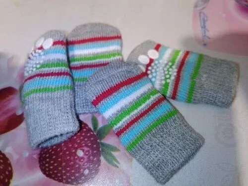These pet socks are more than just cute accessories; they serve an important function too! My little terrier has always struggled with cold feet during winter months but not anymore thanks to these warm, cozy socks. They're made from breathable cotton material that feels soft against her delicate paws while also keeping them nicely insulated.