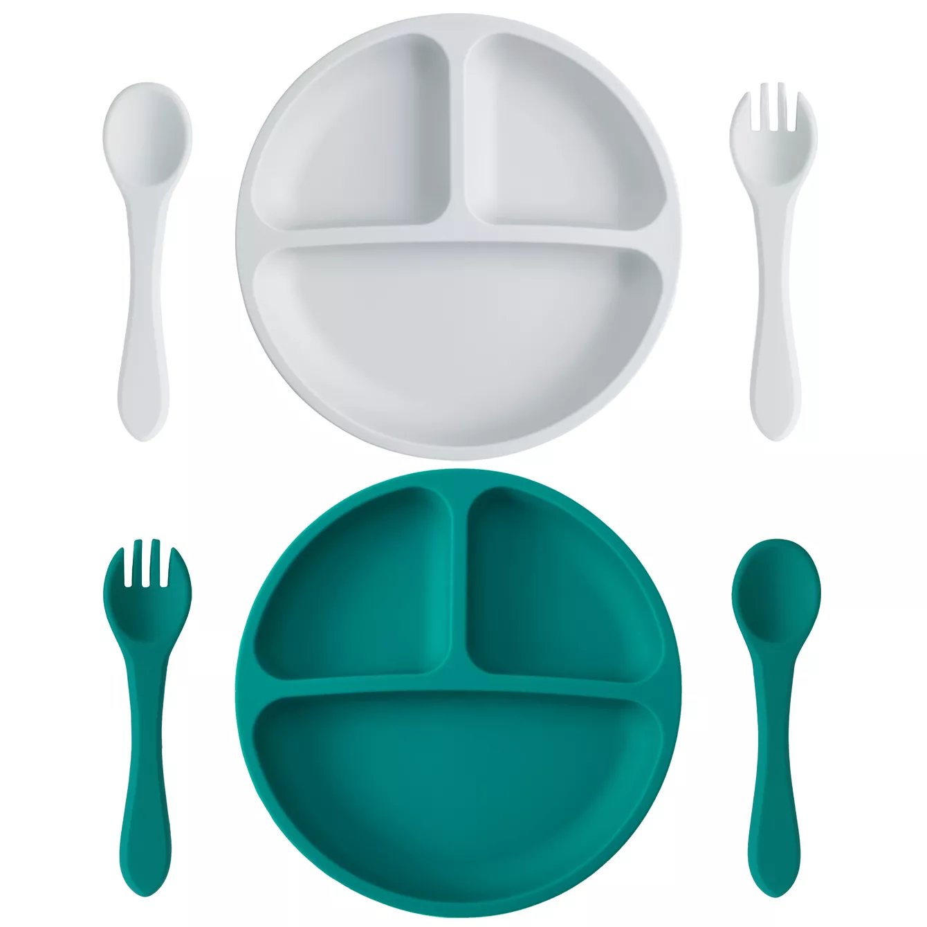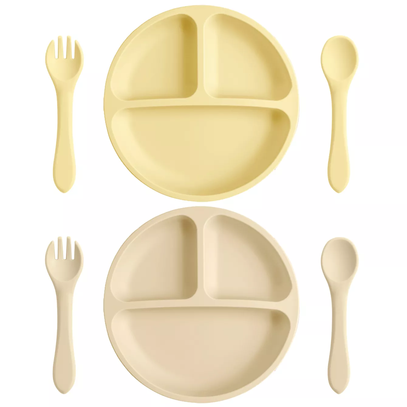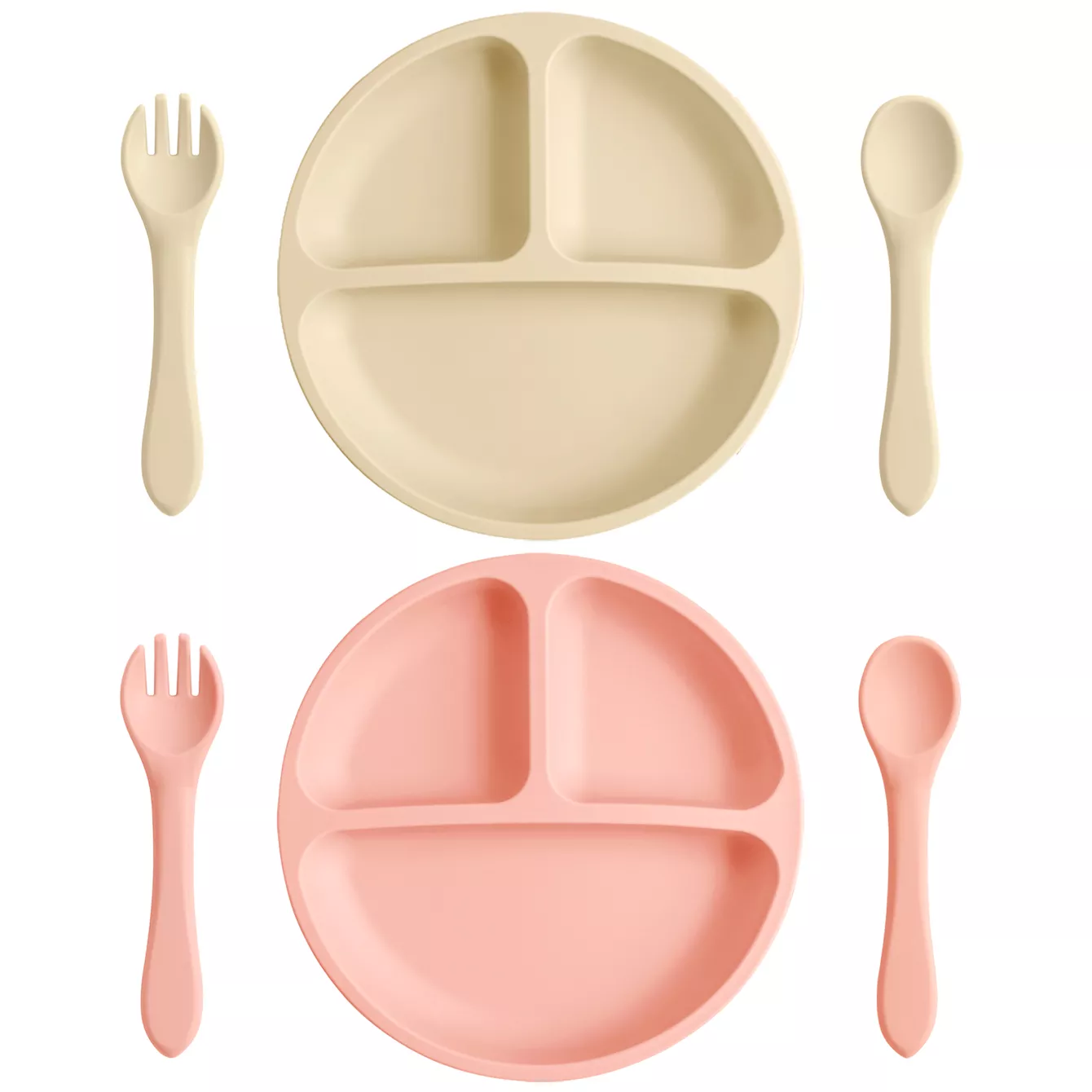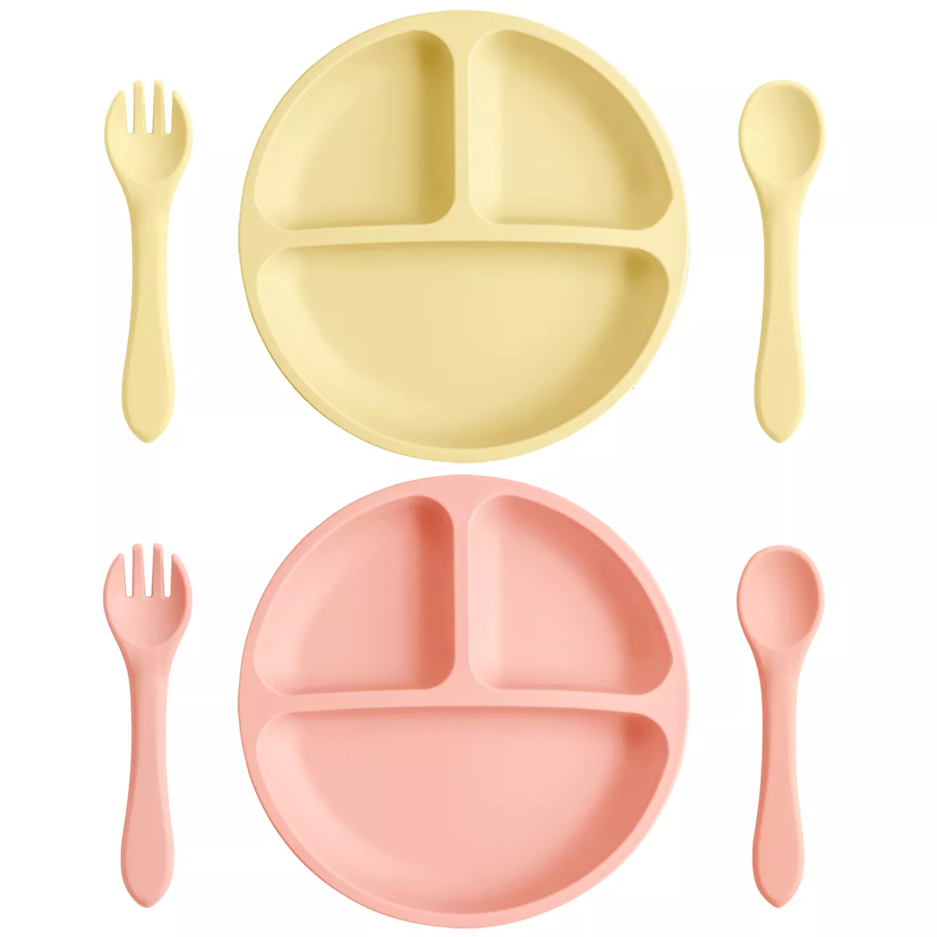 4PCS Silicone Baby Feeding Set with Suction Plate, Bowl, Spoon & Fork