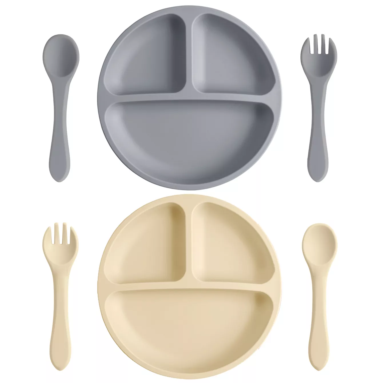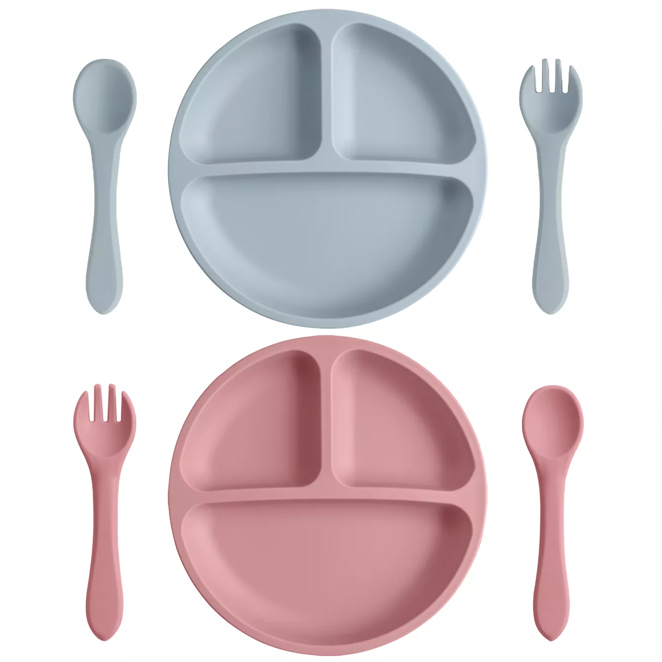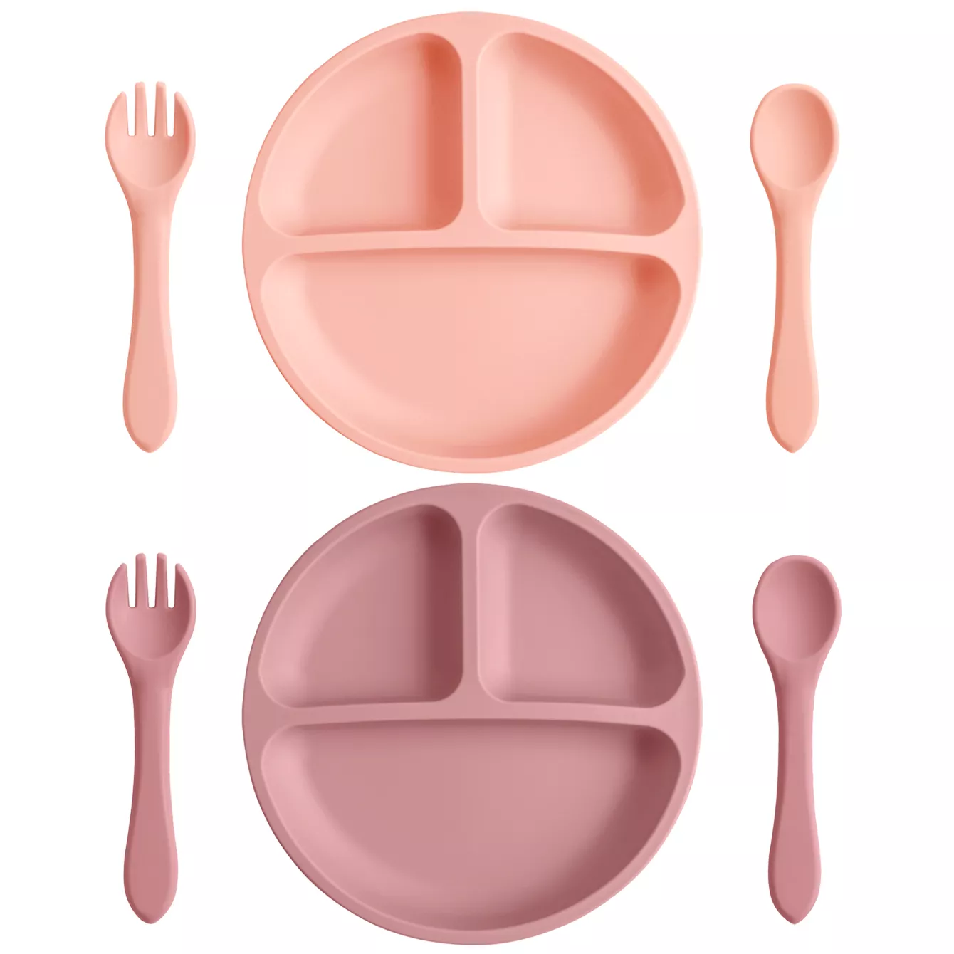 4PCS Silicone Baby Feeding Set with Suction Plate, Bowl, Spoon & Fork