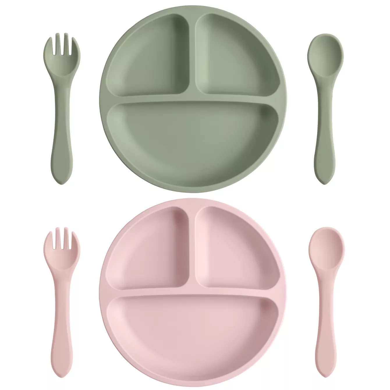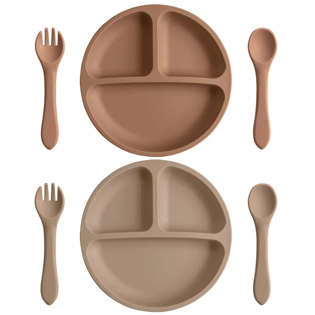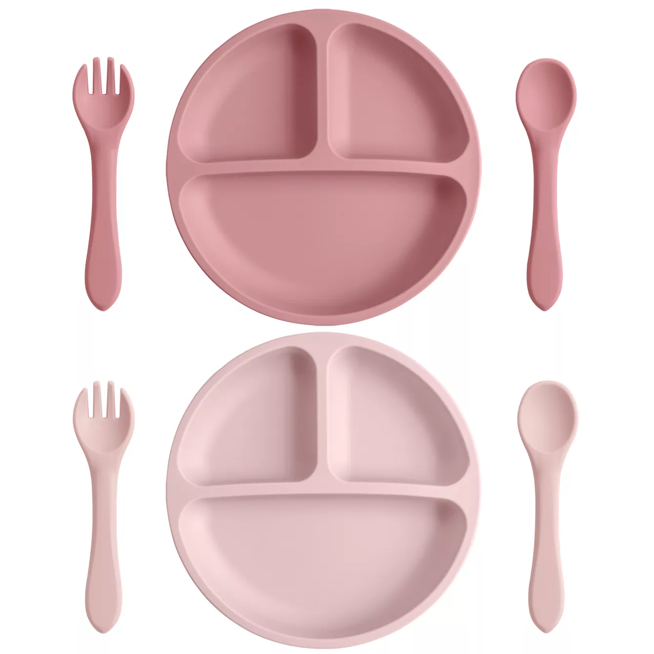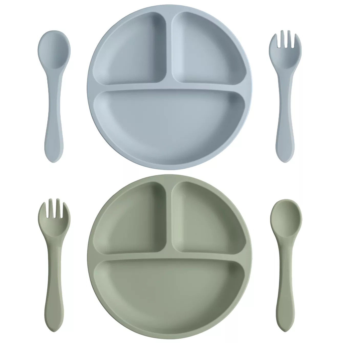 4PCS Silicone Baby Feeding Set with Suction Plate, Bowl, Spoon & Fork