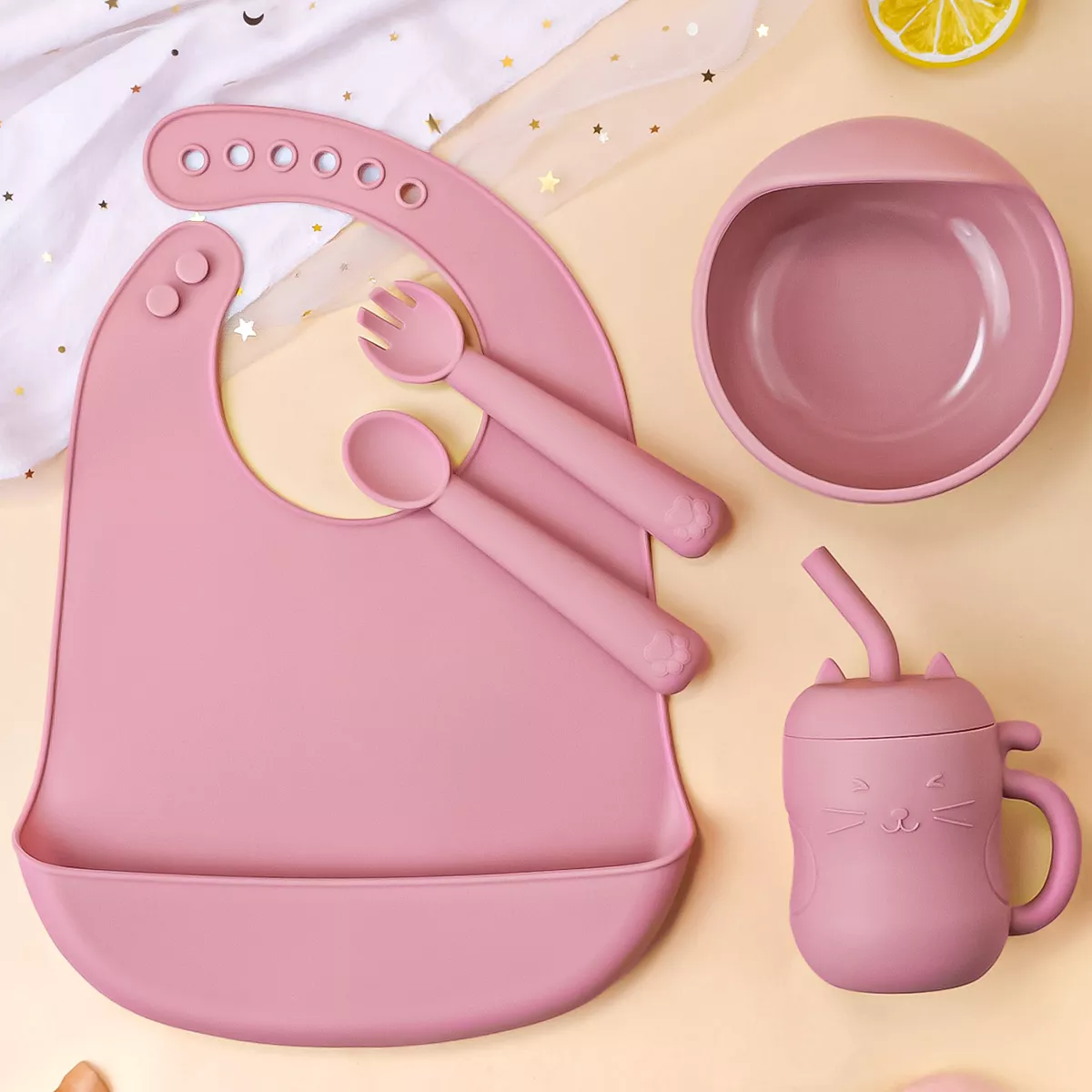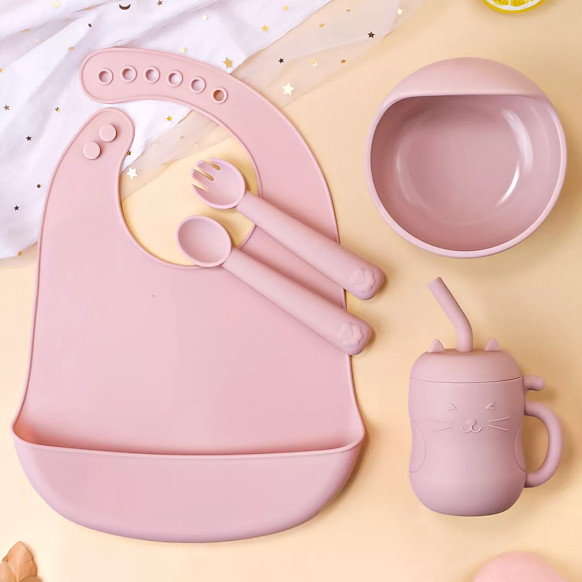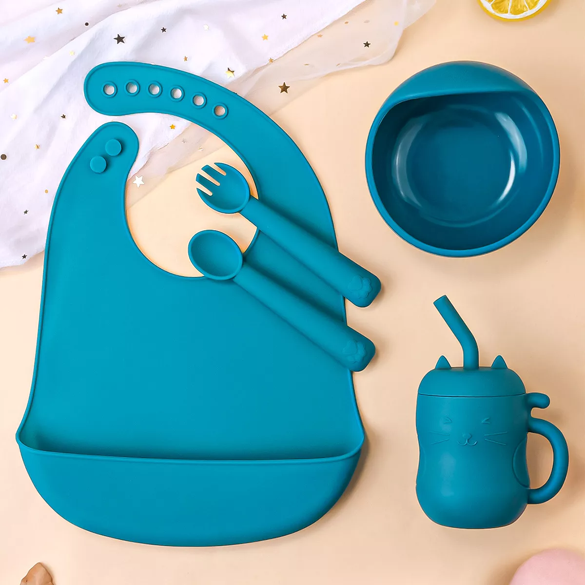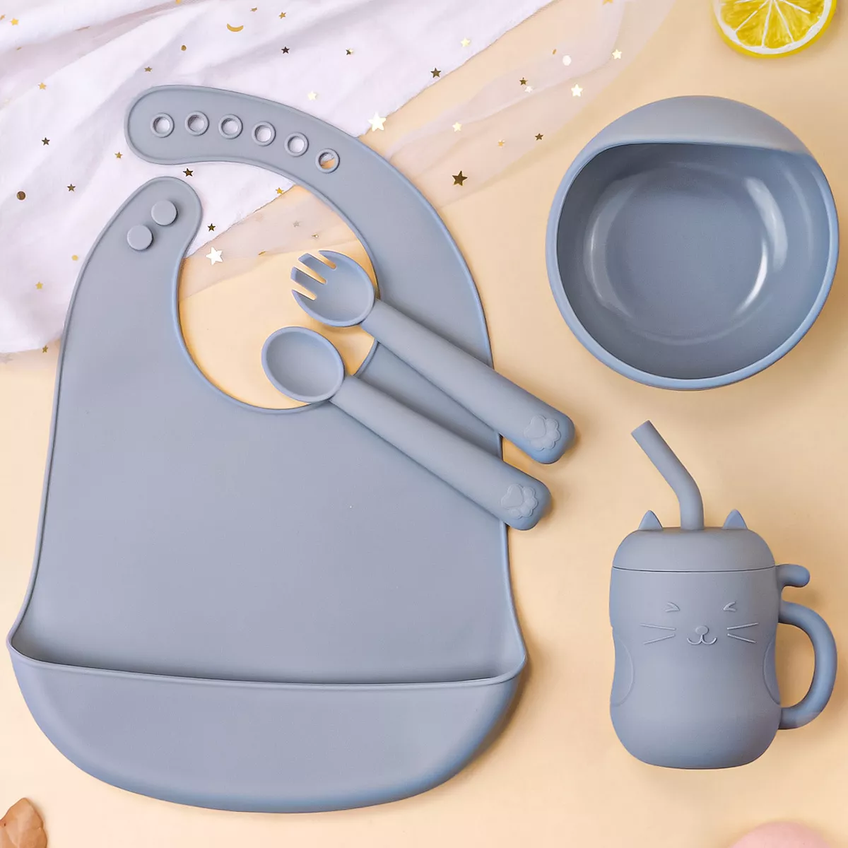 5-Piece Silicone Baby Feeding Set with Suction Bowl, Plate, Bib & Utensils