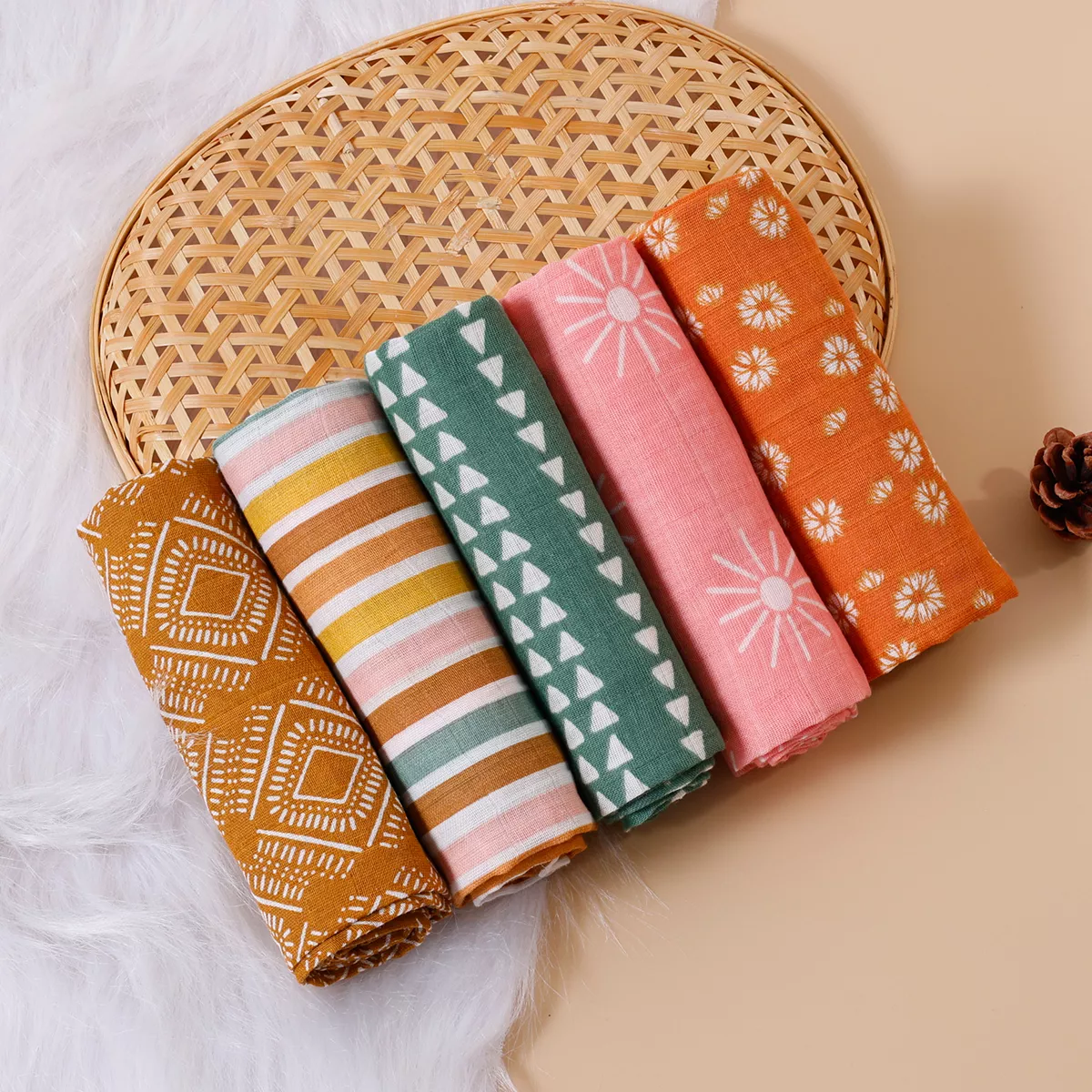 • 5-in-1 functionality: Use as bibs, burp cloths, light blankets, nursing covers, or baby scarves