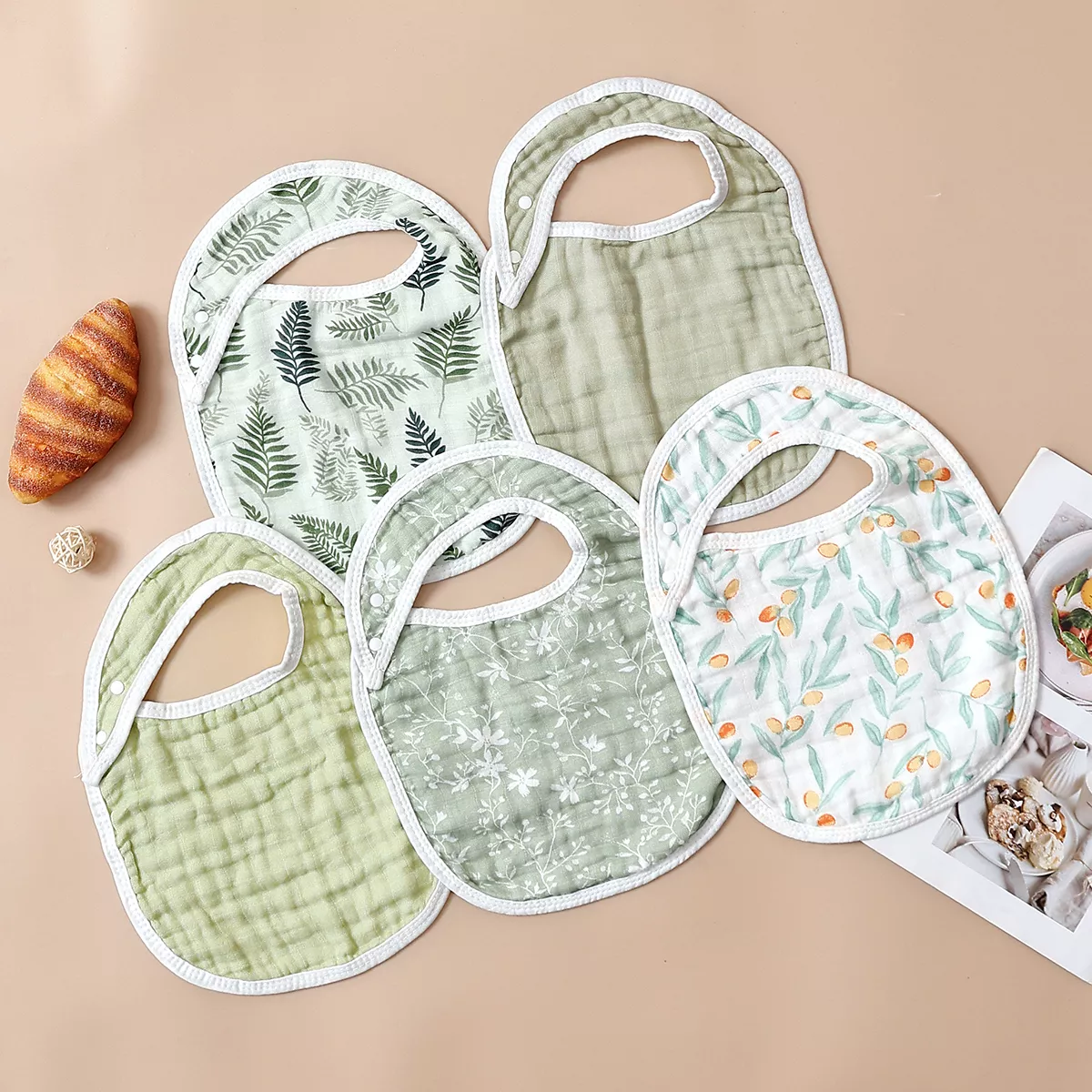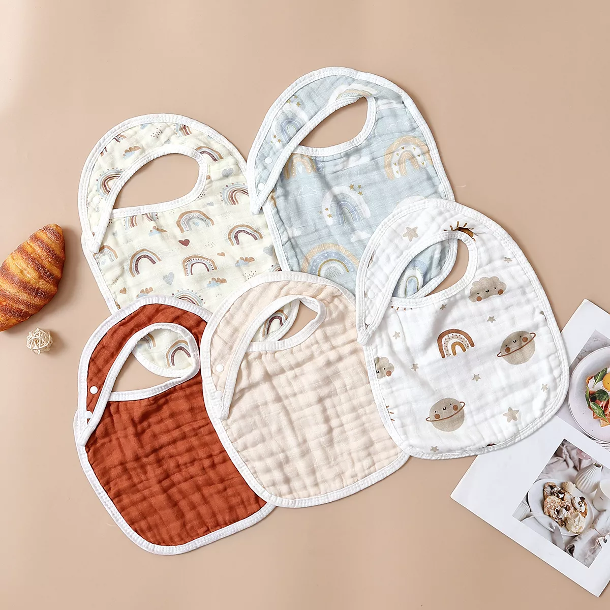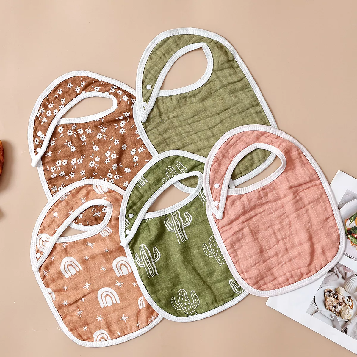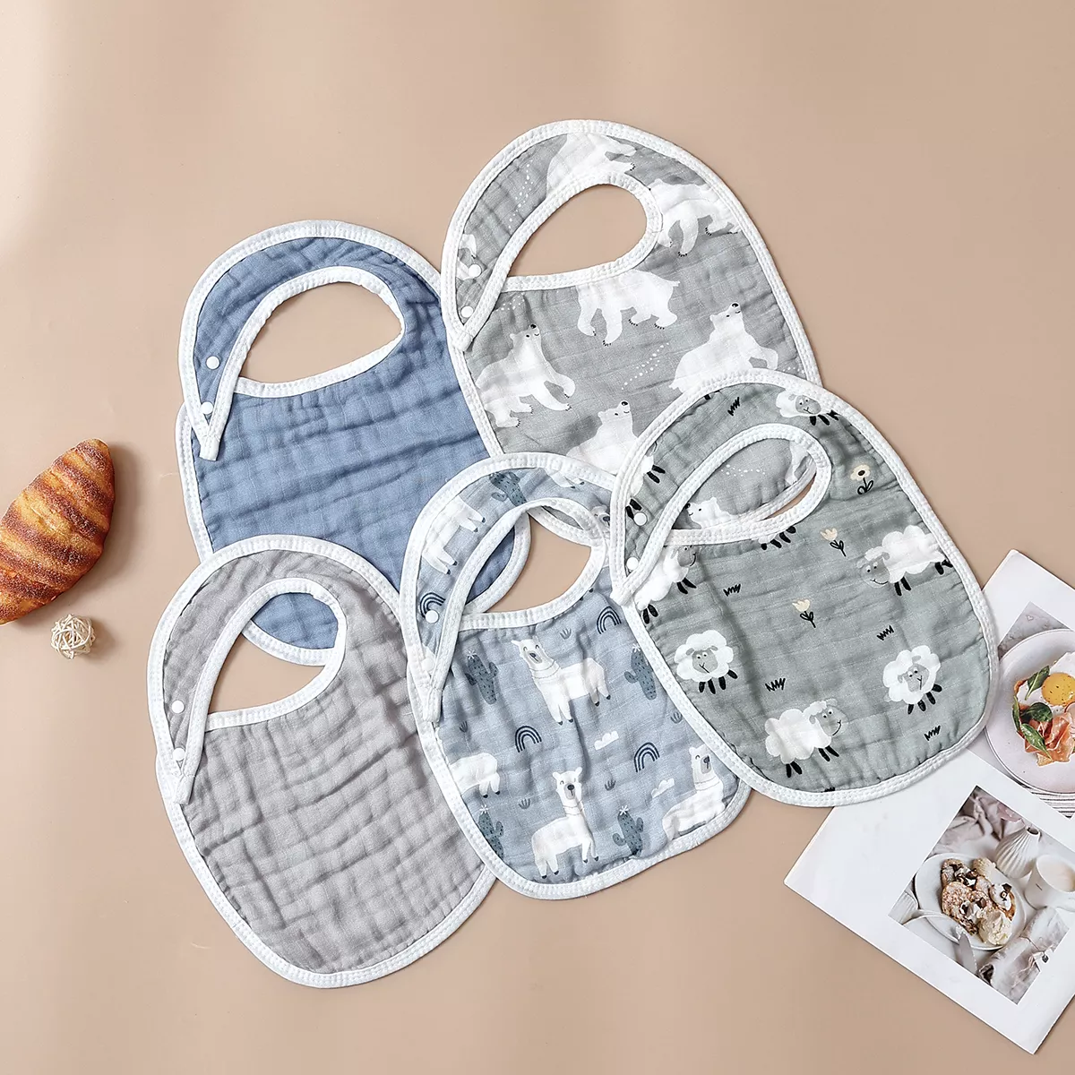 5-Piece Soft Muslin Baby Bib & Burp Cloth Set – Bamboo Cotton, Breathable & Cute