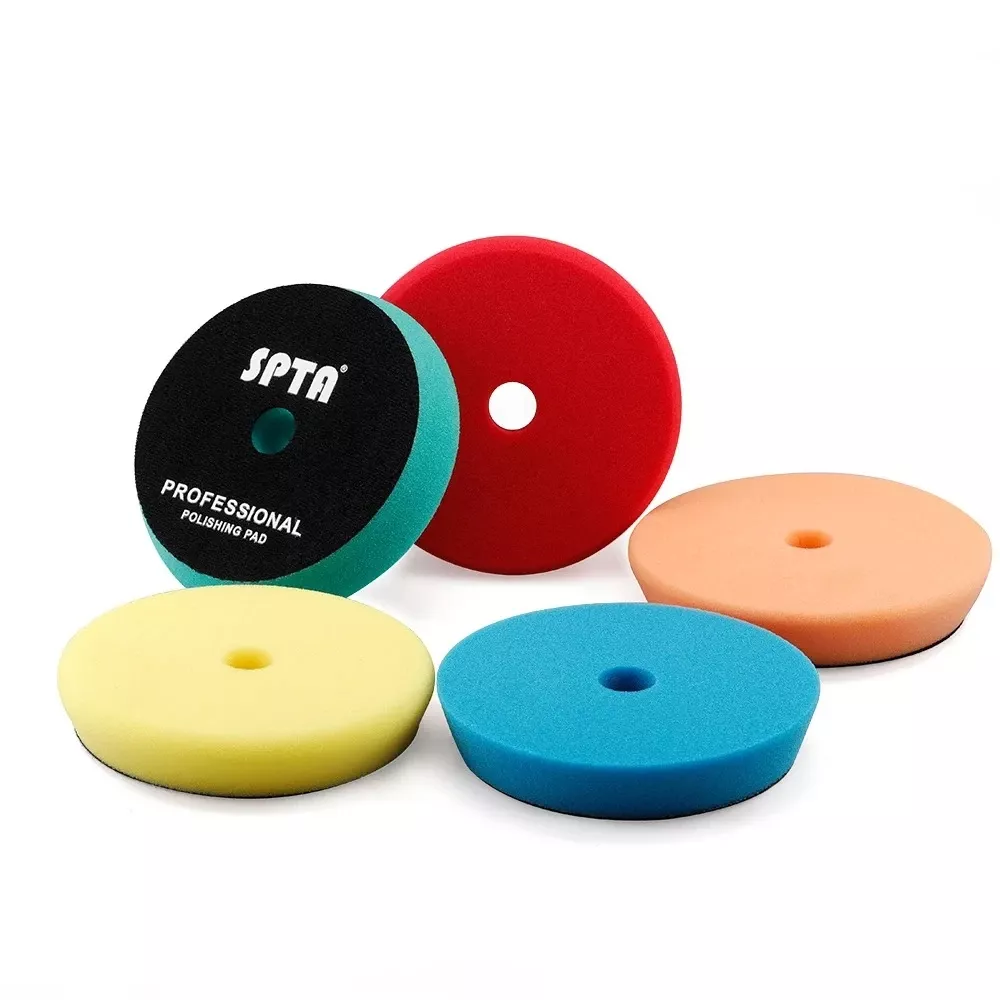 These polishing pads are best used during full detailing sessions when you need to cut through oxidation, remove deep scratches, eliminate swirl marks, or add a glossy finishing touch. Use the green pad for heavy cut correction, yellow or orange for medium cutting and polishing, blue for light imperfections, and red for final finish and waxing. Their performance is optimized when used with compatible compounds and the right polishing machine settings.