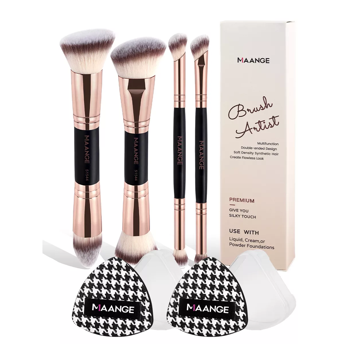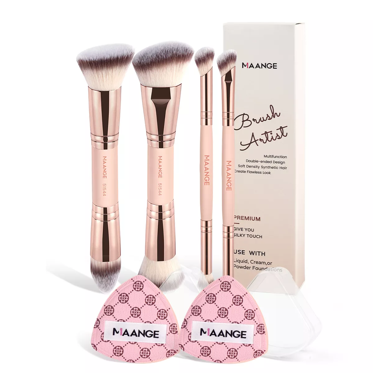 • High-Quality Synthetic Hair Brushes: Each brush is crafted from soft, high-quality synthetic hair, ensuring even application of foundation, concealer, and other cosmetics for a flawless finish.