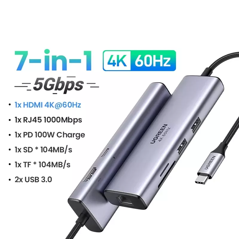 Say goodbye to tangled cables and missing ports. This sleek 7-in-1 USB C Hub transforms a single USB-C port into a powerful multitasking station — perfect for laptops, tablets, or handheld devices like the Steam Deck. Whether you’re setting up a professional workstation, streaming in 4K, or transferring files on the go, this hub delivers convenience and performance in one compact device.