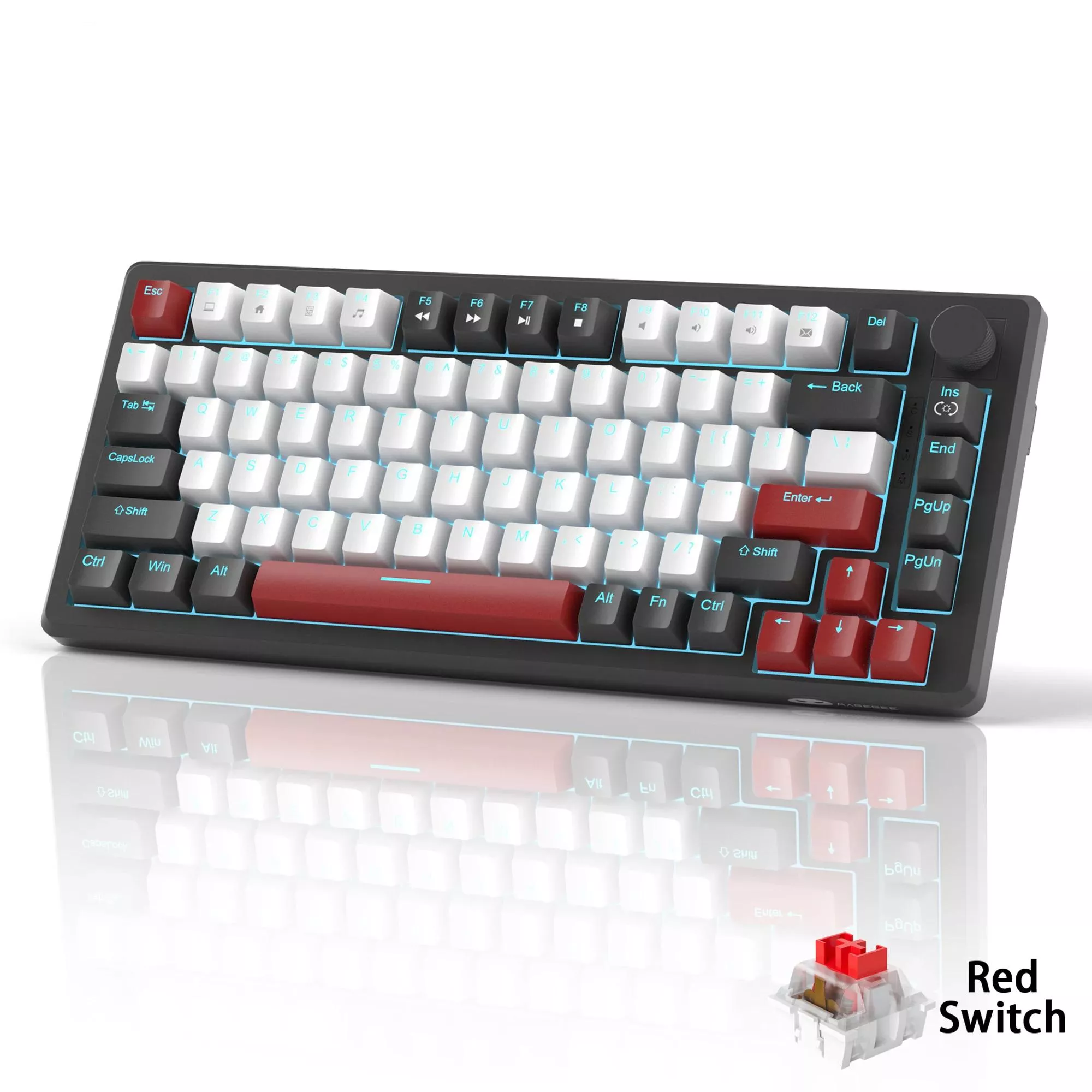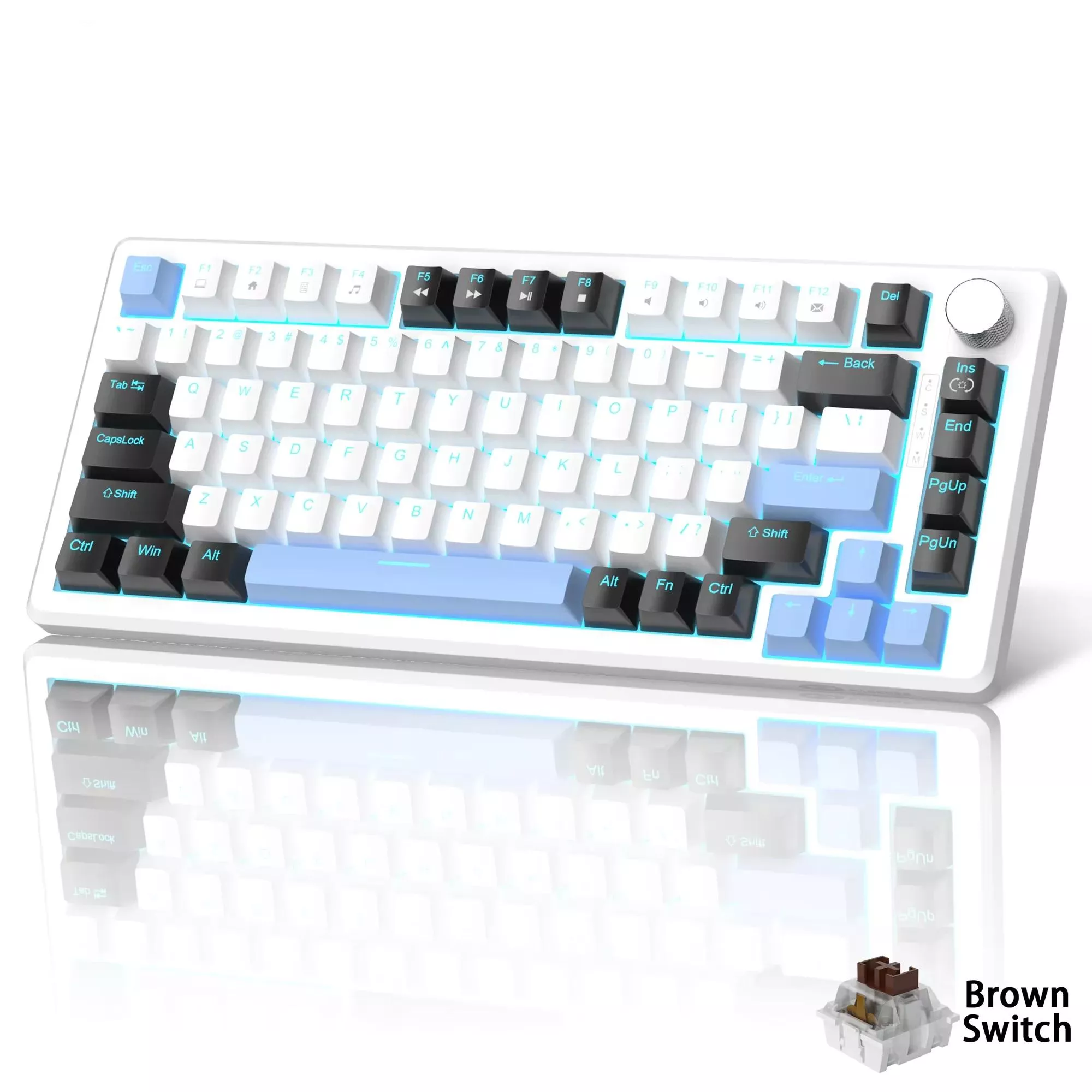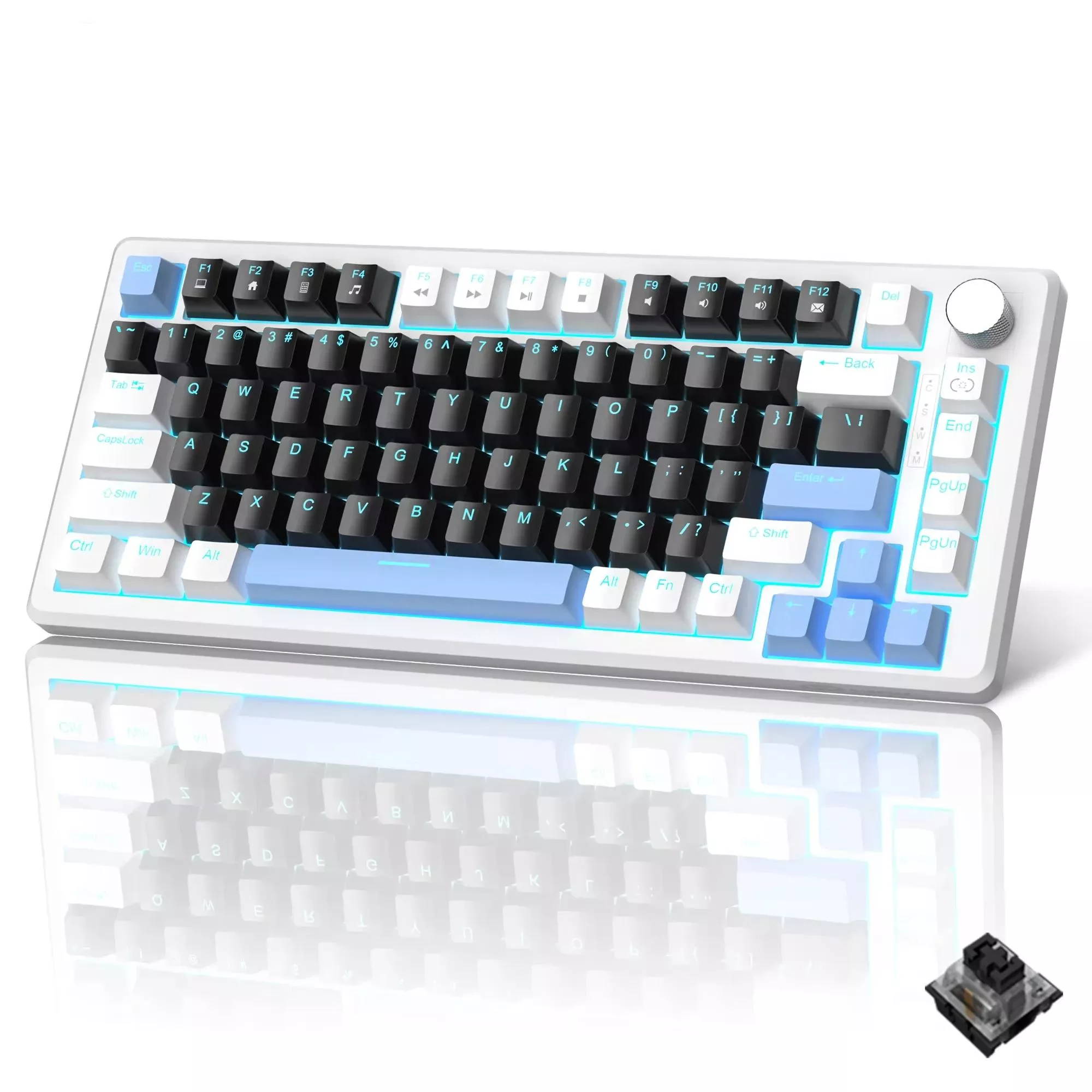 75% Compact Mechanical Gaming Keyboard with Knob & Blue Backlighting