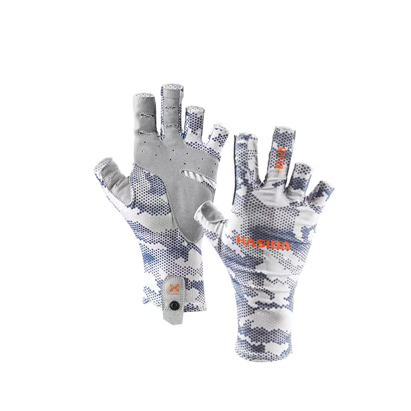 Made from high-performance ice silk fabric, these gloves provide UPF50+ UV protection, keeping your skin safe from harmful rays. The breathable, sweat-wicking material ensures your hands stay cool and dry even during intense activity. The reinforced palm features an abrasion-resistant PU coating combined with honeycomb silicone grip technology for superior hold on rods, paddles, or gear, even in wet conditions. A dual camouflage white-and-blue design adds style and outdoor stealth, while the five-finger independent design gives you full dexterity for tasks like tying hooks or handling bait.