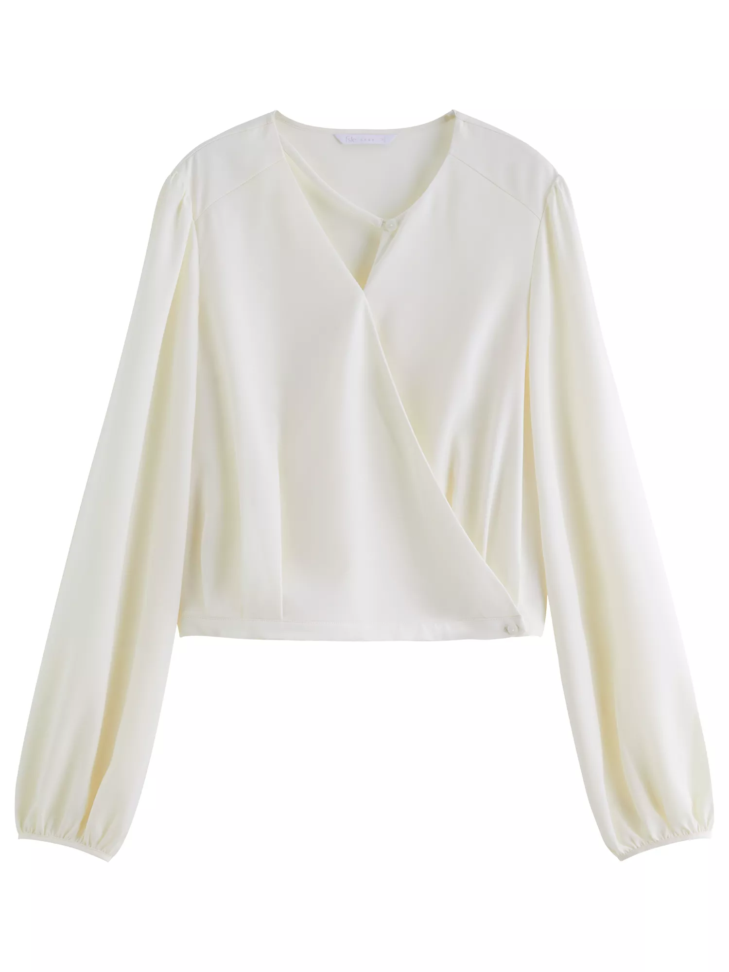 Unlike ordinary casual tops, this blouse offers a flattering drape and modern asymmetry that elevate its everyday wearability. The slightly stretchy fabric ensures ease of movement, while the soft texture feels gentle on the skin. Designed with comfort and style in mind, it’s ideal for transitional seasons like autumn and spring, or even cool summer evenings.