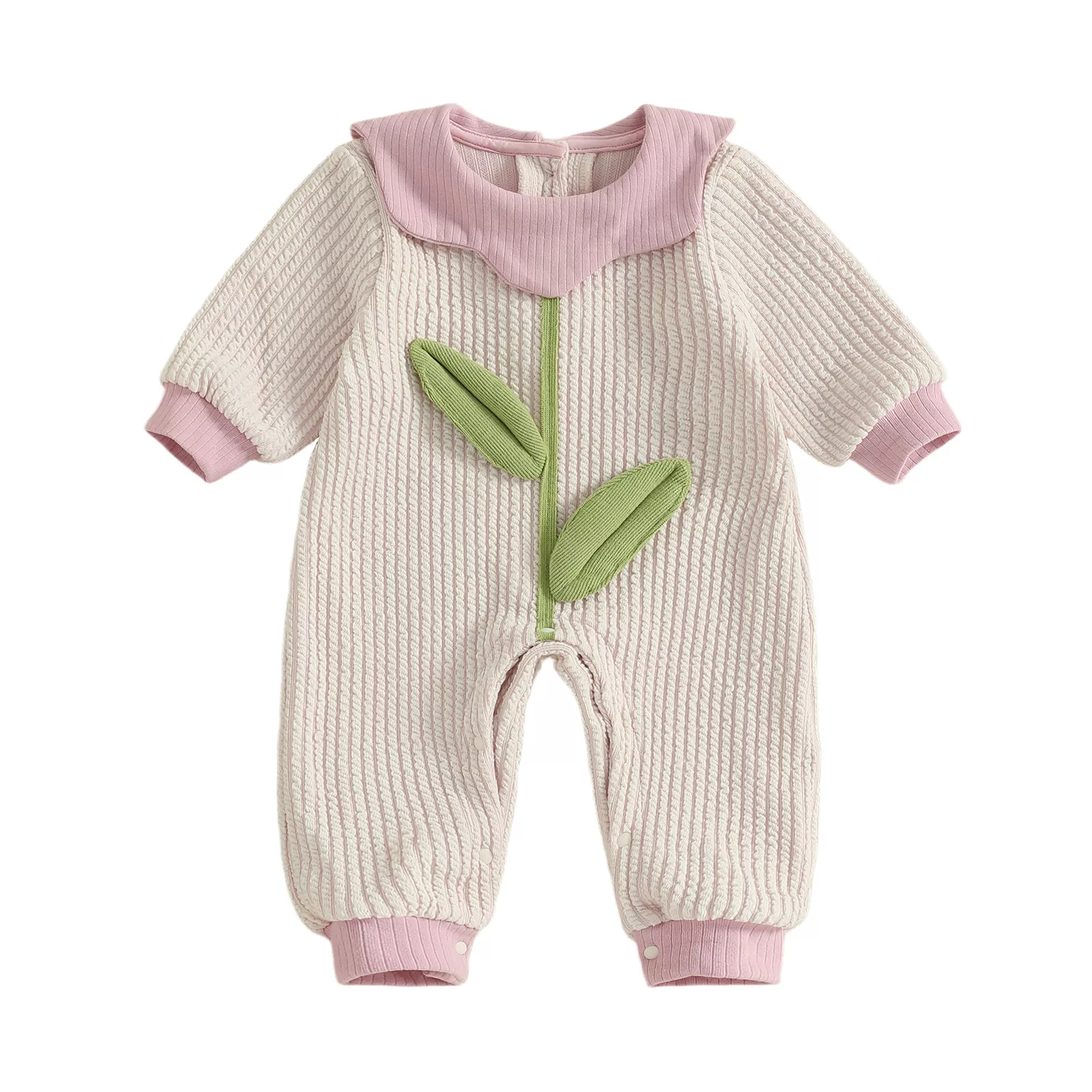 Baby Girl Embroidered Floral Romper with Doll Collar – Long Sleeve Jumpsuit