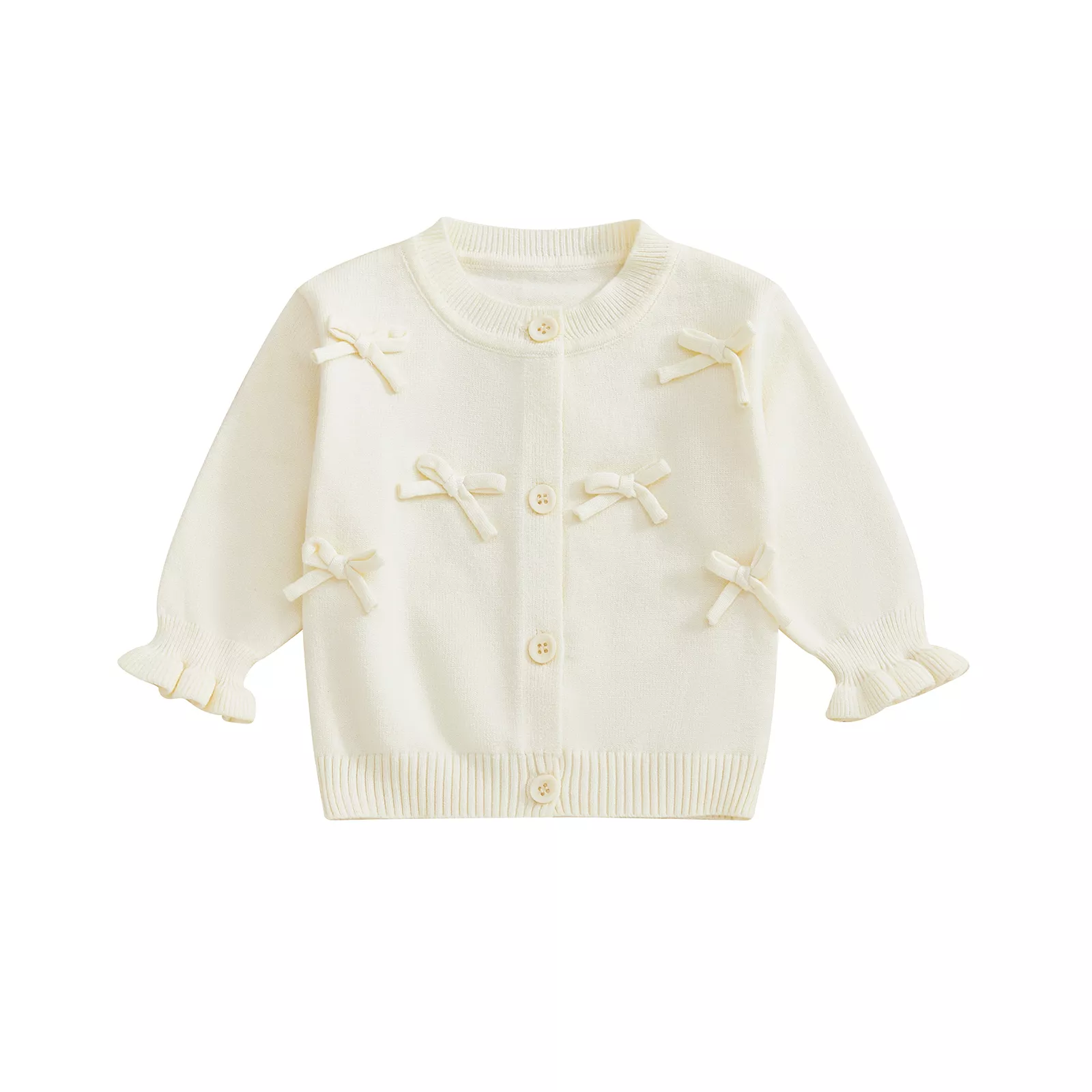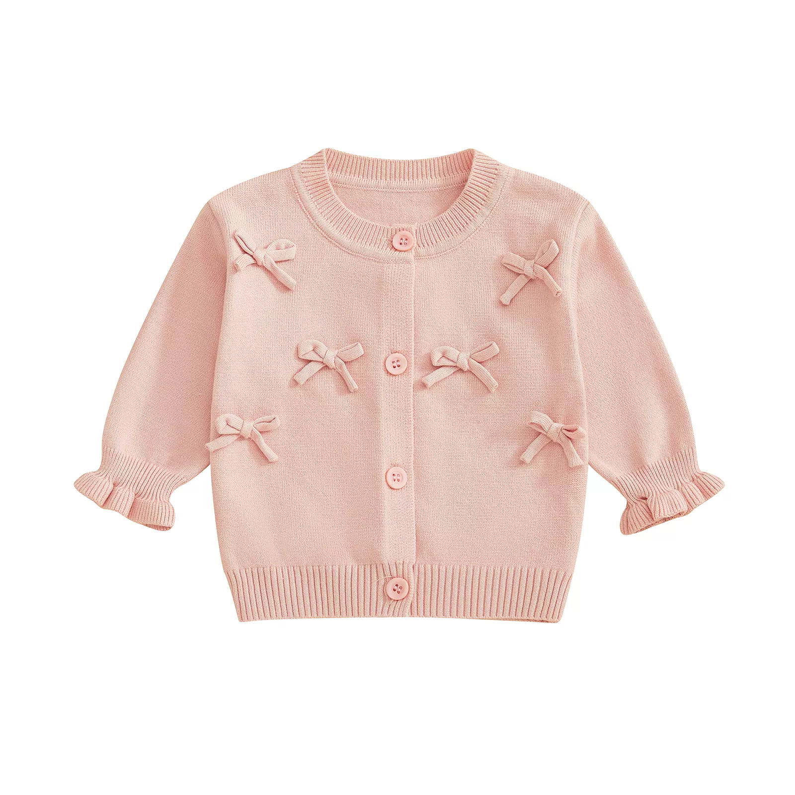 Keep your baby girl cozy and stylish with this charming knitted cardigan featuring a sweet 3D bow design. Designed for both comfort and cuteness, this long sleeve sweater is a must-have addition to your little one’s fall wardrobe. The soft knit fabric, easy button-up front, and elegant crew neck make dressing your baby easier and more adorable than ever. Whether you’re heading out for a family outing or staying warm indoors, this cardigan is a perfect pick.