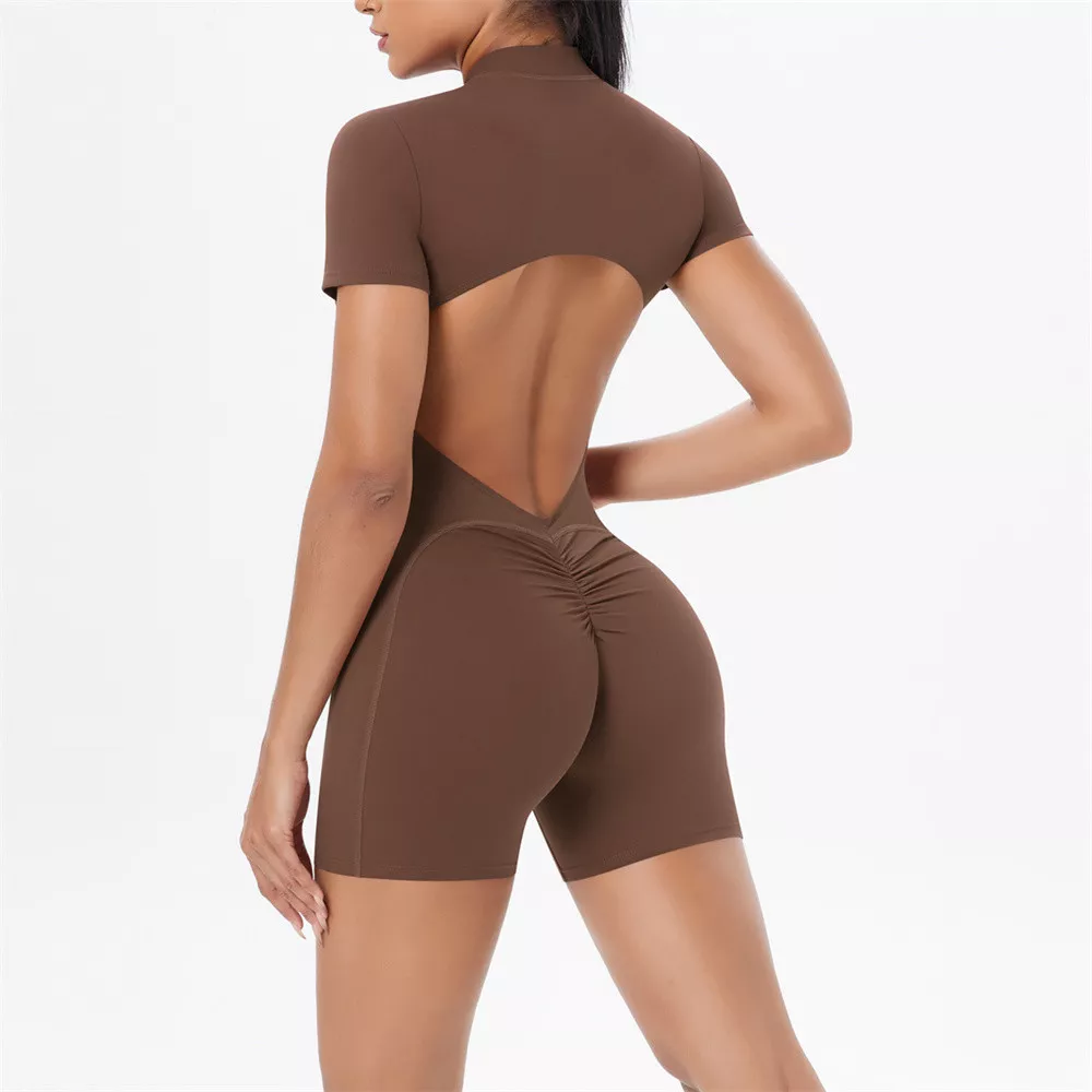 Backless Short Sleeve Yoga Jumpsuit for Women