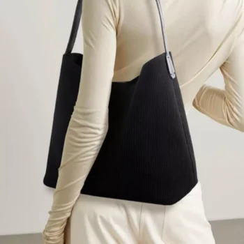 Knitted Ribbed Tote Bag for Women – Versatile Large Capacity Shoulder Bag