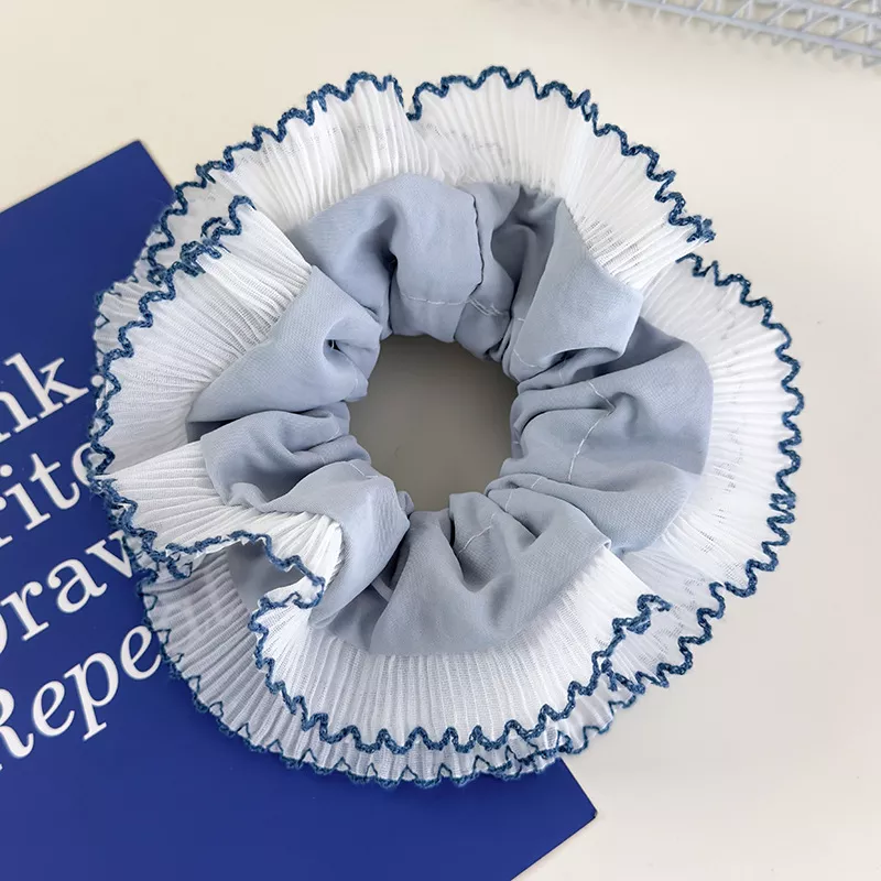 Made with stretchable elastic and soft, breathable materials, it’s gentle on hair while delivering a secure hold. The layered lace detailing and timeless blue gingham print make this scrunchie more than just functional — it’s a statement of style and softness, ideal for women and girls who love delicate yet noticeable accessories.