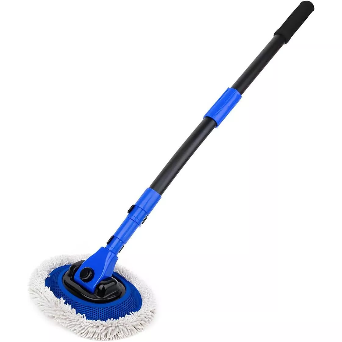 Telescopic Rotating Car Wash Mop with Double Brush Head & 360° Swivel Handle