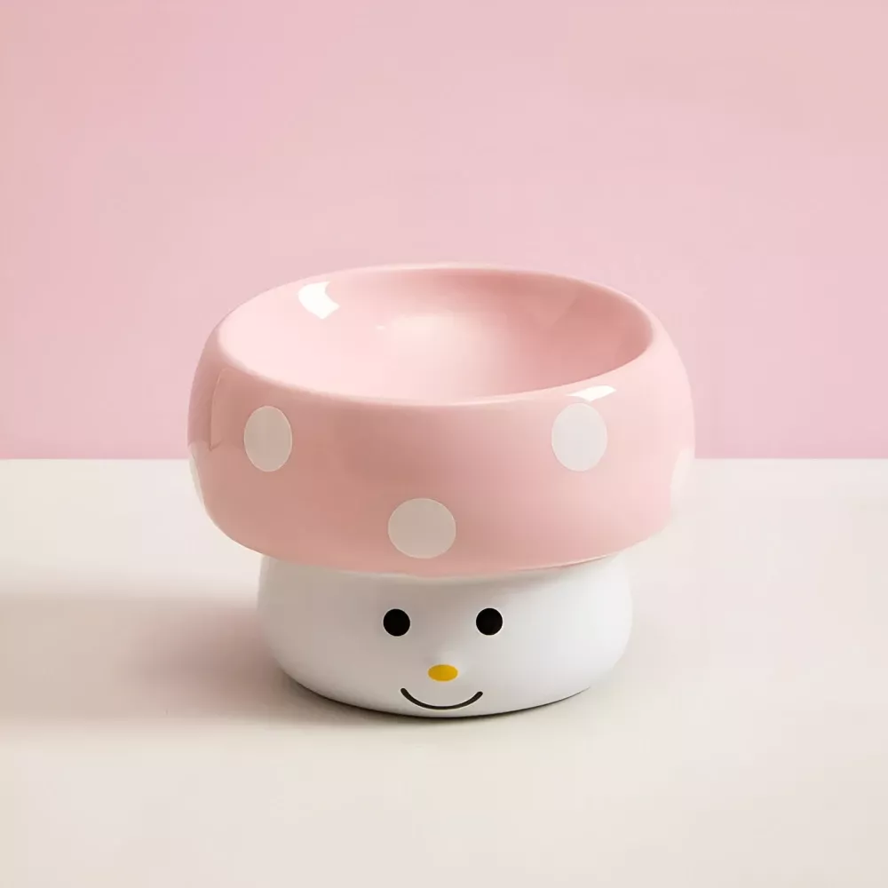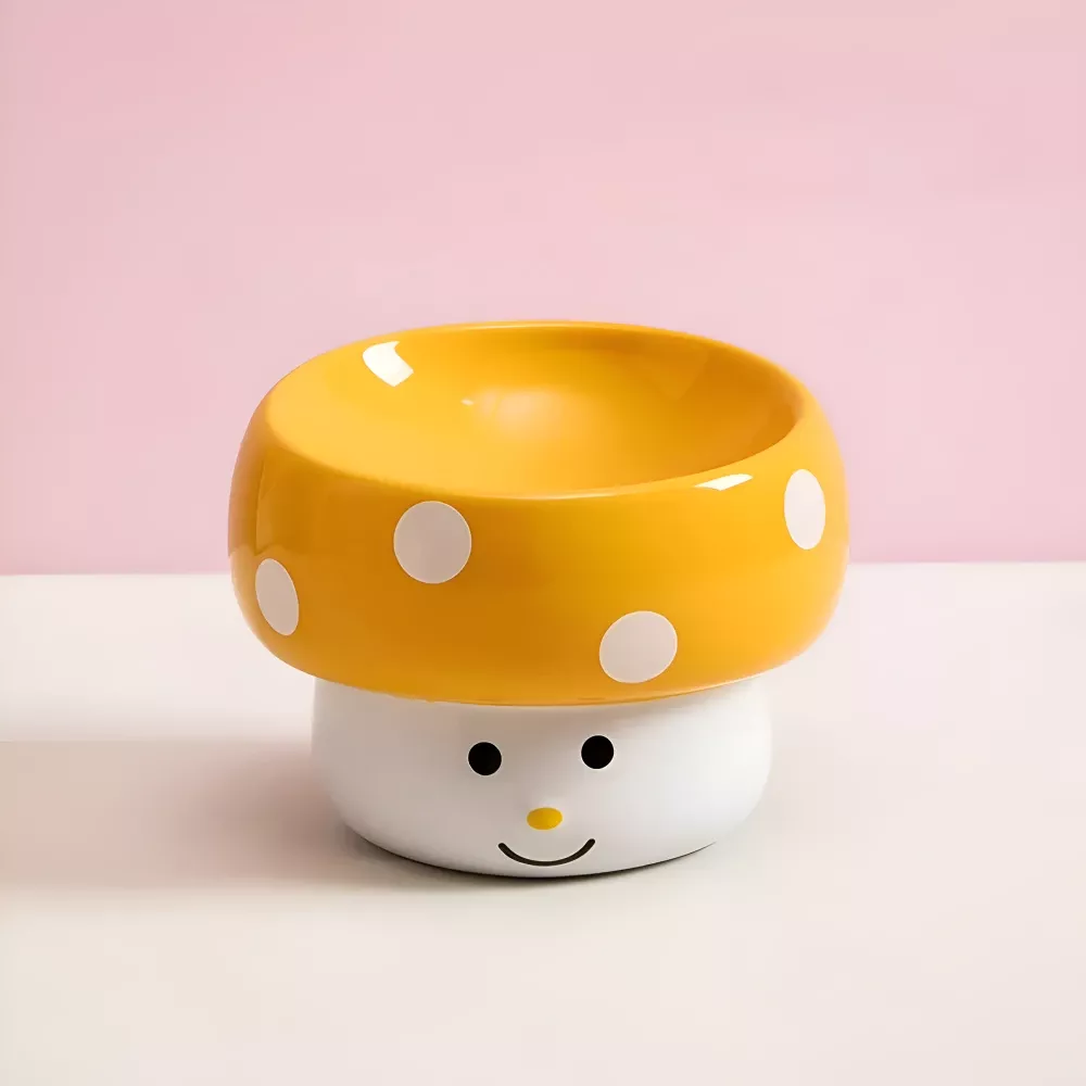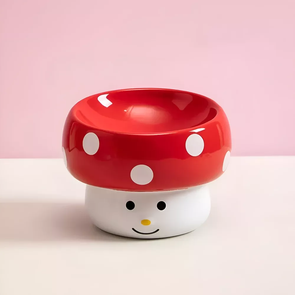 Ceramic Mushroom Pet Bowl with Slanted Design & Non-Slip Base for Dogs & Cats