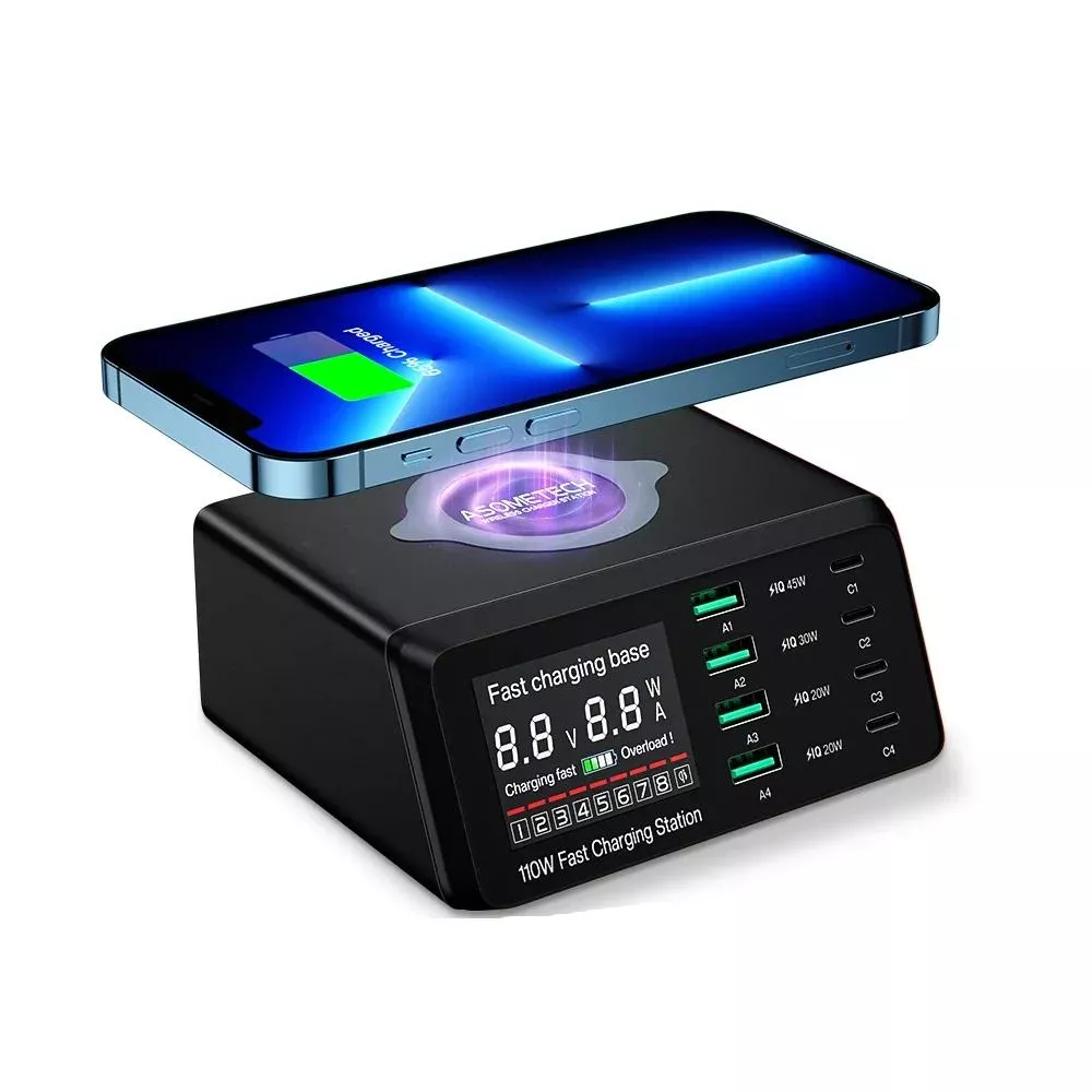 110W 8-Port USB C Fast Charger with Wireless Charging Station