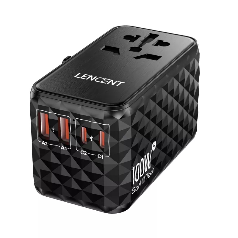 100W GaN Universal Travel Adapter with Fast Charging and Worldwide Plug Support