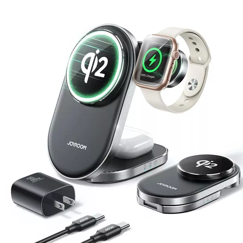 3-in-1 Magnetic Wireless Charging Station with Foldable Stand