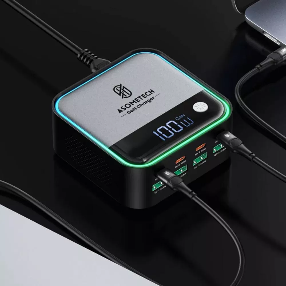 8-Port GaN USB-C Fast Charging Station with LED Display 100W Power