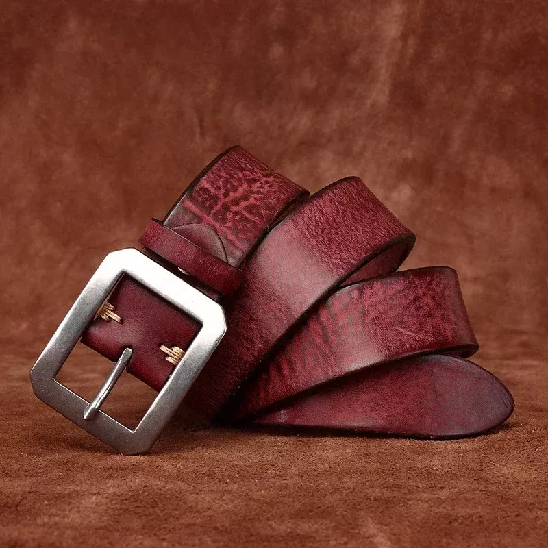 The rugged charm of its antique-dyed leather combined with minimalist design gives it a classic yet modern appeal. Thanks to its 1.5-inch width, it fits perfectly with most belt loops, making it your go-to accessory for every day. Available in versatile shades like black, brown, khaki, red, and dark brown, you can match it with any outfit for a polished look.