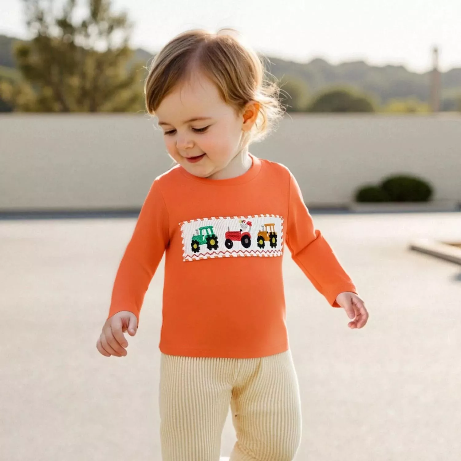 Baby Boys Halloween Outfit 2-Piece Long Sleeve Top & Plaid Overalls Set
