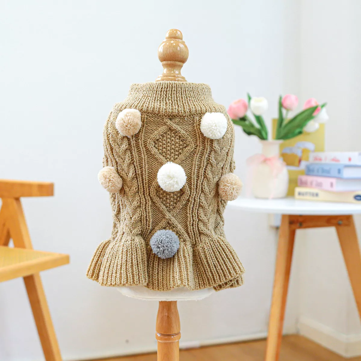 Colorful Wool Knit Pet Sweater Dress for Cats & Small Dogs – Autumn Winter Wear