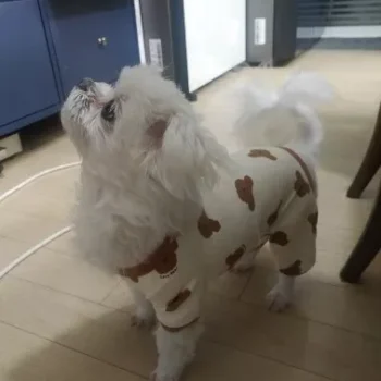 This jumpsuit is simply adorable! My fur baby looks so cute and cozy in it. The color block design adds a stylish touch, while the bear print gives it a playful vibe. Perfect for chilly walks!