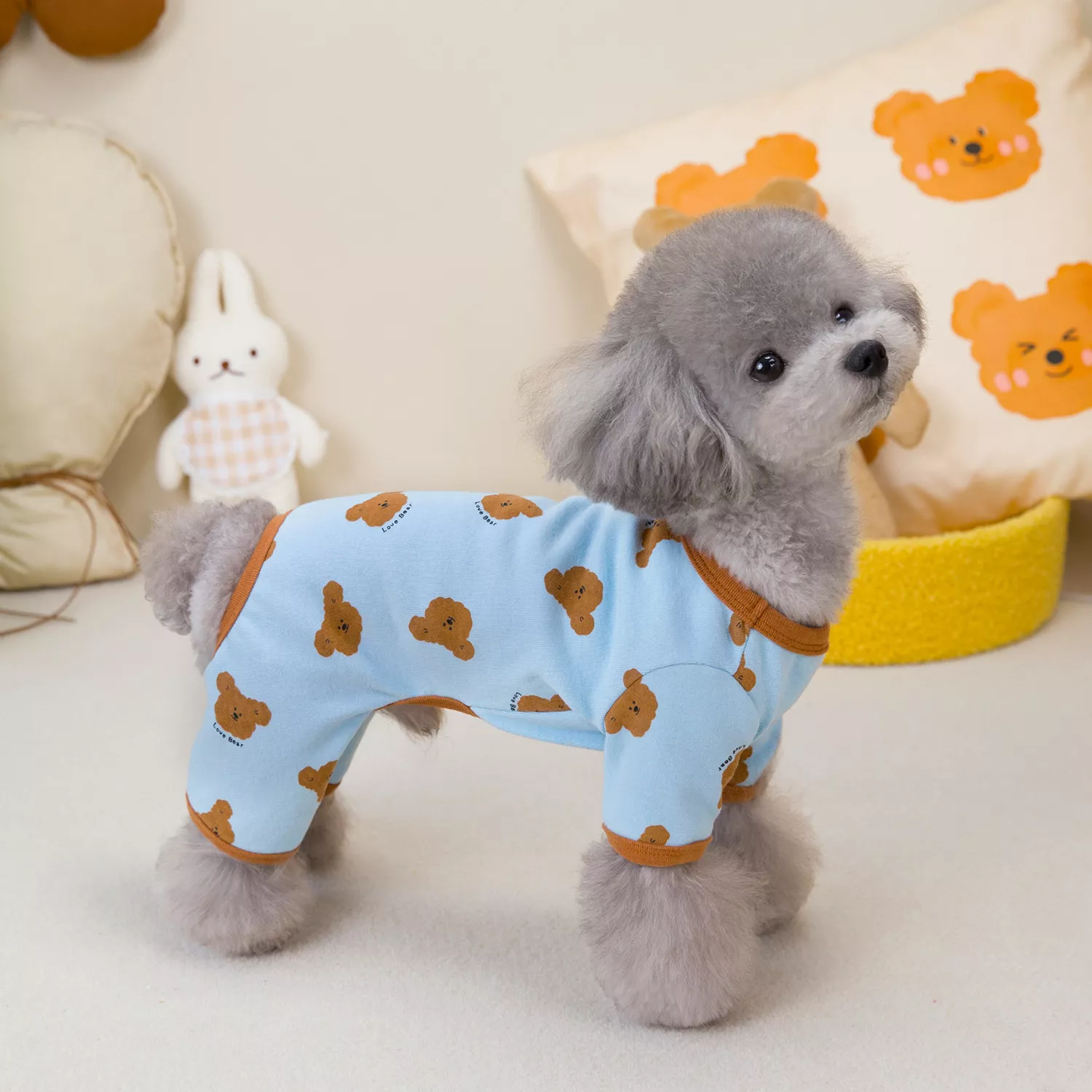 Give your pet the gift of warmth, style, and freedom of movement with this comfy jumpsuit. Whether it’s for daily wear around the house or a quick walk outside, this outfit will keep your pet cozy and cute. Don’t wait—add this charming bear print jumpsuit to your pet’s wardrobe today and see how happy they’ll be!