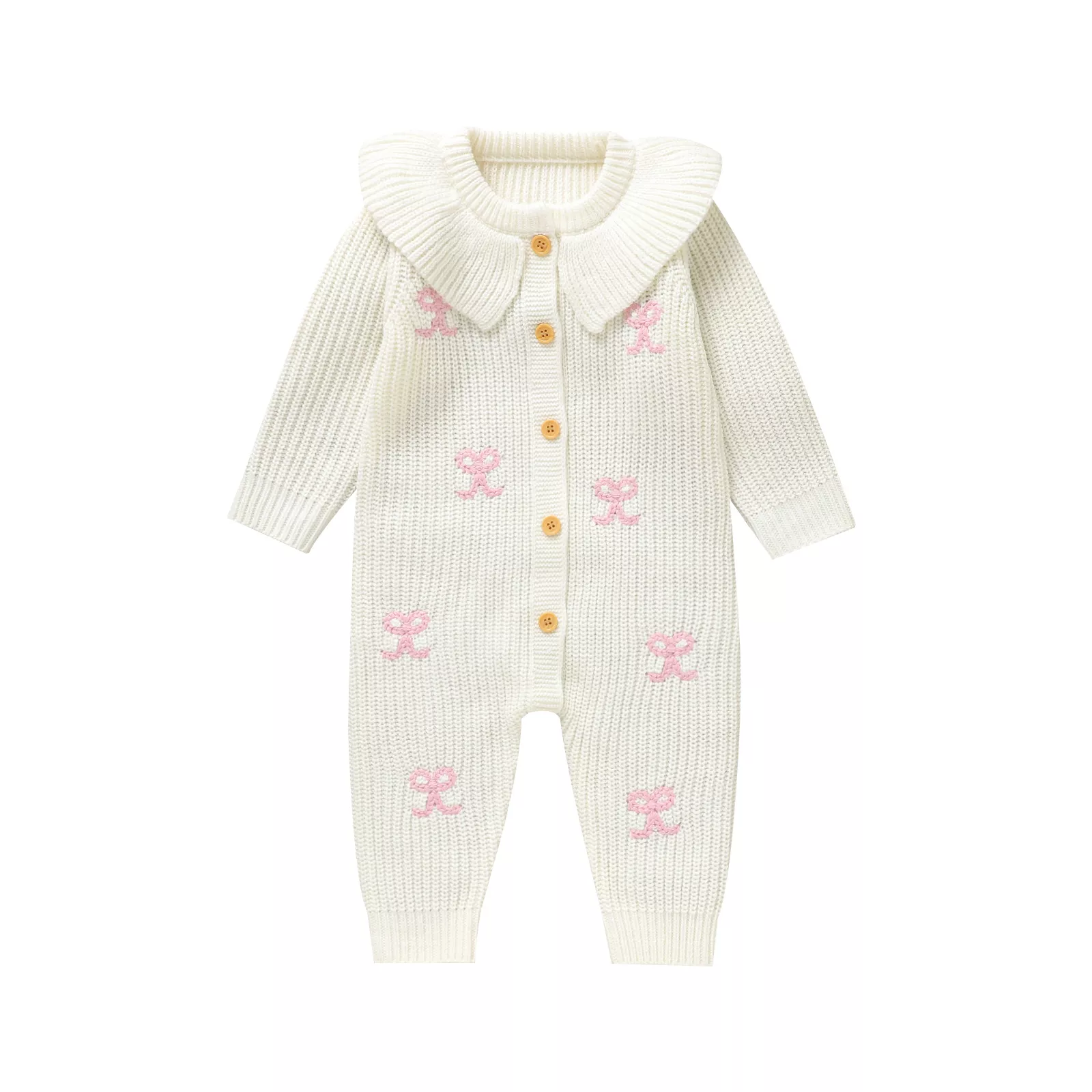 Cozy Newborn Baby Girl Knitted Romper with Embroidered Bows