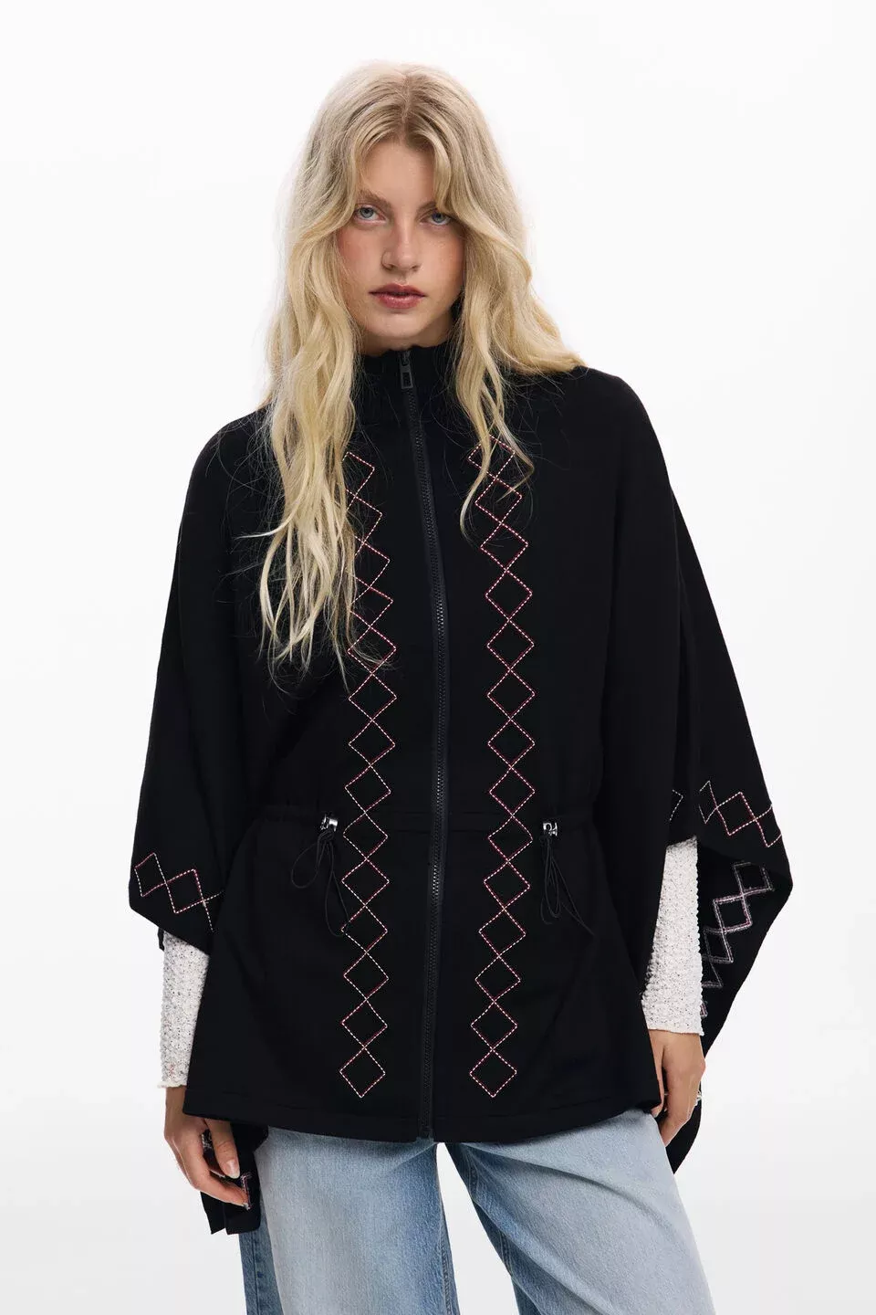 Desigual Women’s Black Geometric Blazer with Zip & Turtleneck