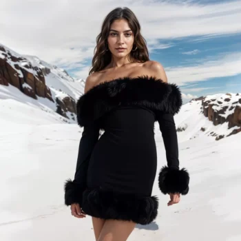 Elegant Off-The-Shoulder Faux Fur Mini Dress