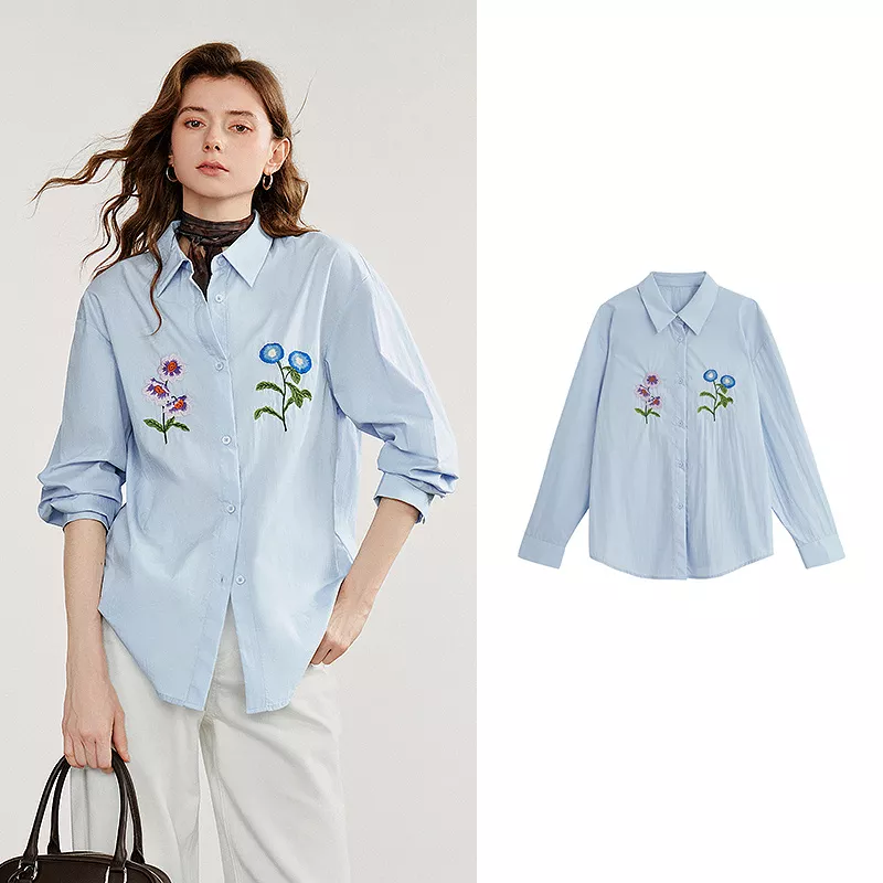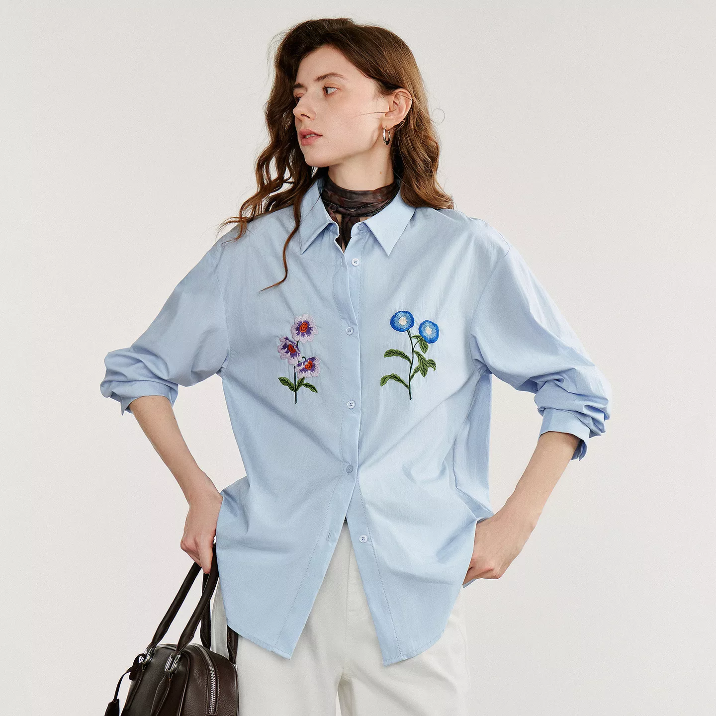 Chic Autumn Floral Embroidered Blouse for the Modern Office Lady