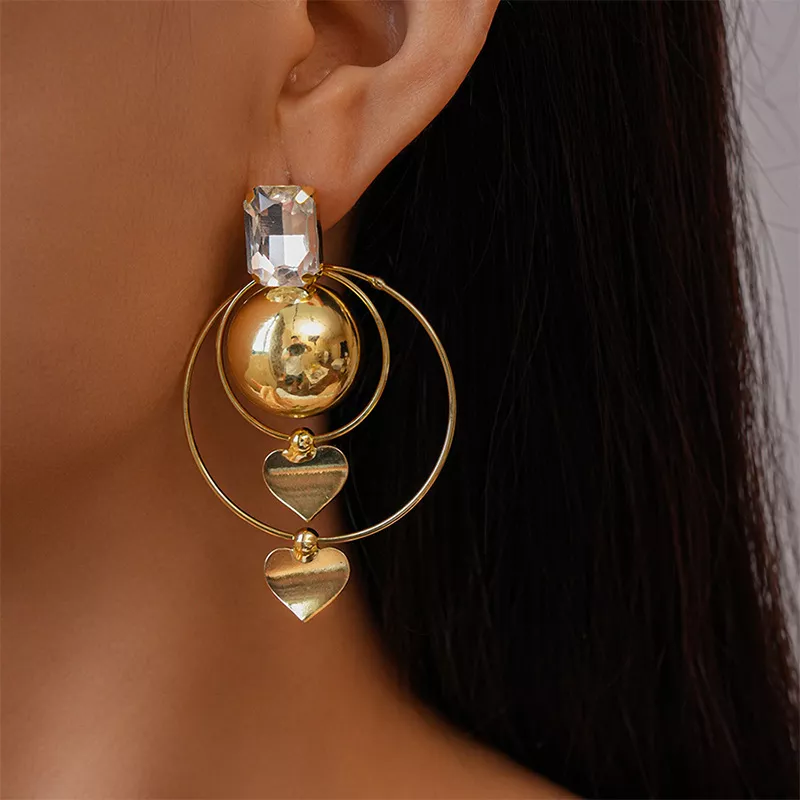 Whether you’re dressing up for a special event or want to add a touch of chic to your daily wardrobe, these big circle heart drop earrings are your go-to accessory. Their distinctive design and warm gold tone complement various styles, from classic to contemporary. Add these earrings to your collection today and turn heads wherever you go.