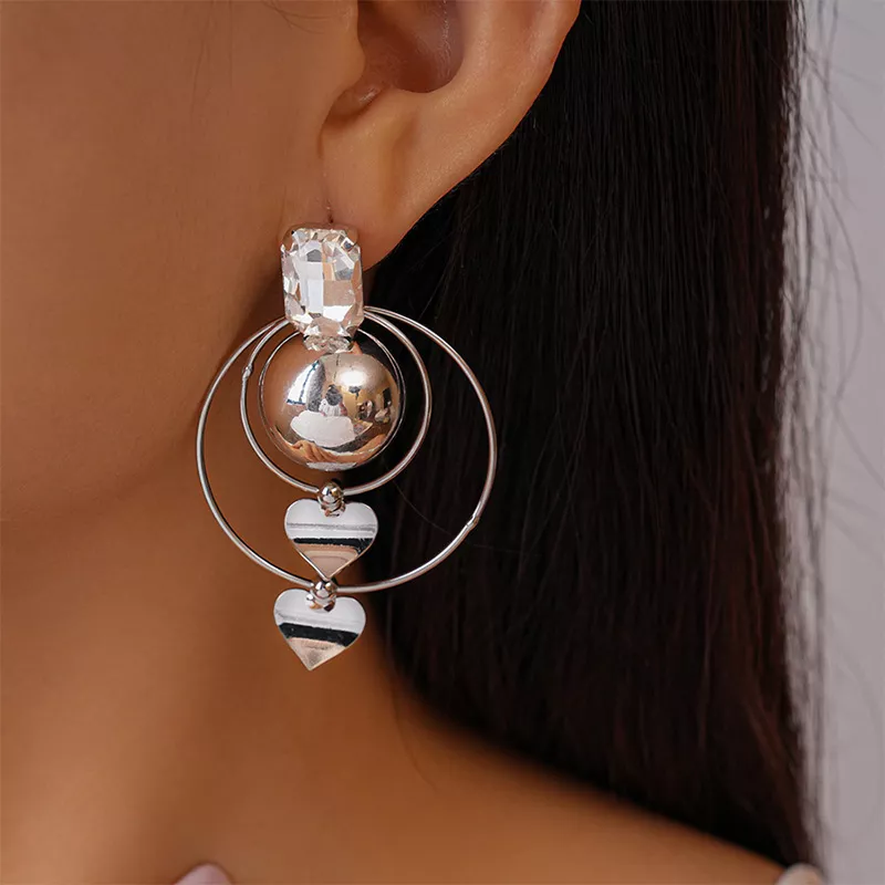 • Bold Geometry: The oversized circle and heart shape design make a striking fashion statement.