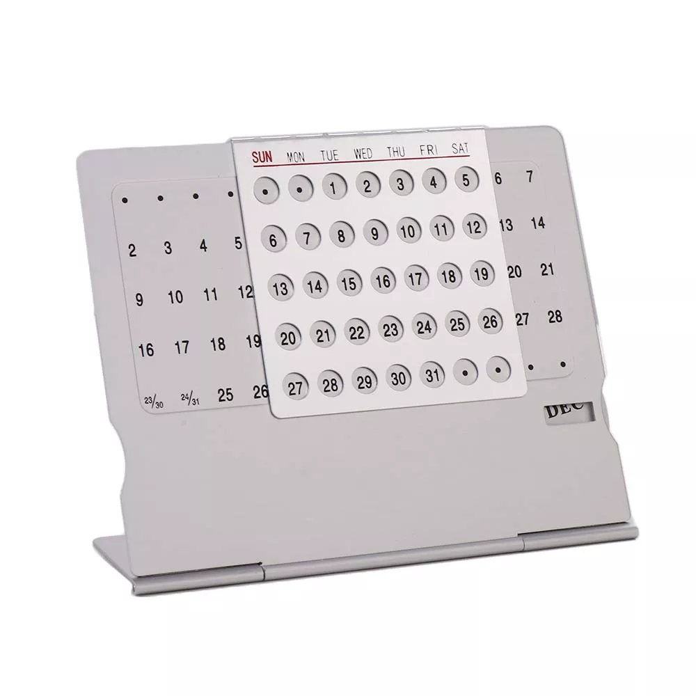 This stunning silver perpetual calendar is crafted from high-quality aluminum alloy, making it a durable and stylish addition to any desk or office space. Measuring just over 4 inches by 3.5 inches, it fits perfectly on your work surface without taking up much space. Its sleek silver finish adds a touch of sophistication, blending seamlessly with both modern and traditional decor styles.