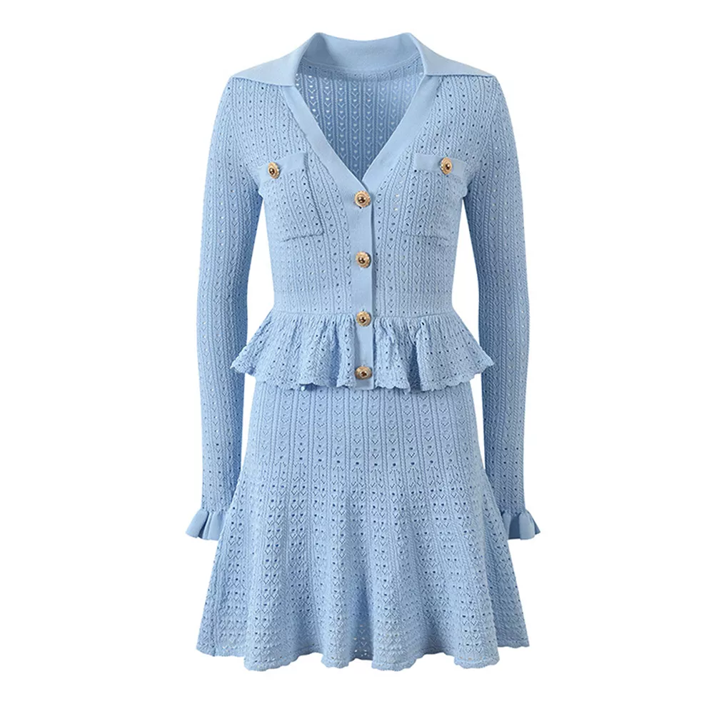 Step into effortless elegance with this beautifully crafted short dress designed for women who appreciate both style and comfort. Featuring a classic lapel collar and long sleeves, this dress is perfect for warm spring and summer days when you want to look polished without sacrificing ease. The high waist and subtle knitted folds create a flattering A-line silhouette that complements every figure, making it a must-have addition to your wardrobe.