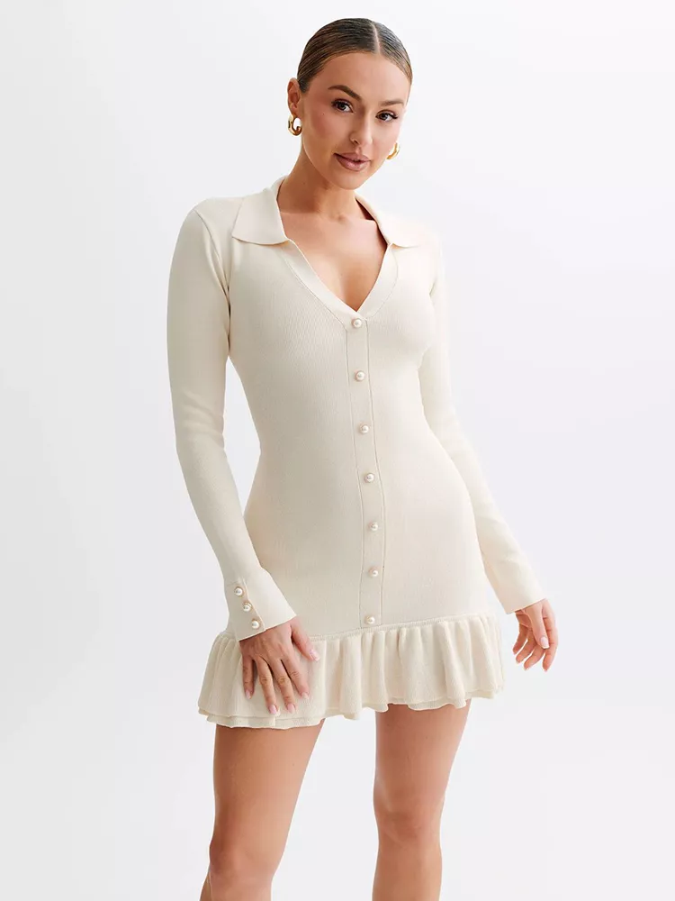 Step out in style this season with our Elegant V-Neck Ruffled Knit Mini Dress. Perfectly designed for the modern woman, this stunning dress combines chic elements with comfortable fit, making it an ideal choice for various occasions. With a delicate ruffle design and beautiful pearl button details, this dress will turn heads wherever you go. Whether you’re heading to work, going out for brunch, or attending an evening event, this dress is sure to make you feel confident and stylish!
