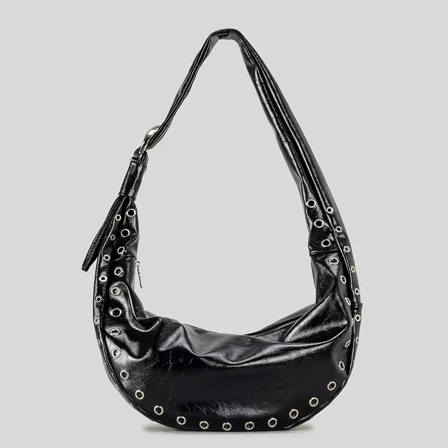 Fashion Rivet Half Moon PU Leather Shoulder Bag – Retro Chic Underarm Handbag