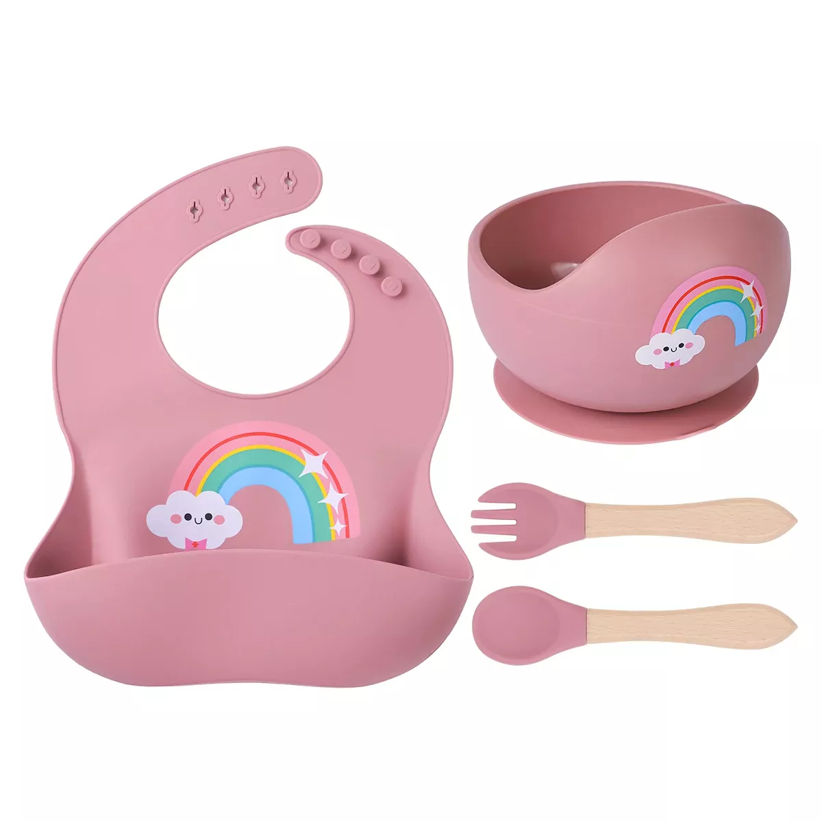 Silicone Baby Feeding Set with Bib, Suction Bowl, Spoon & Fork – 4pcs