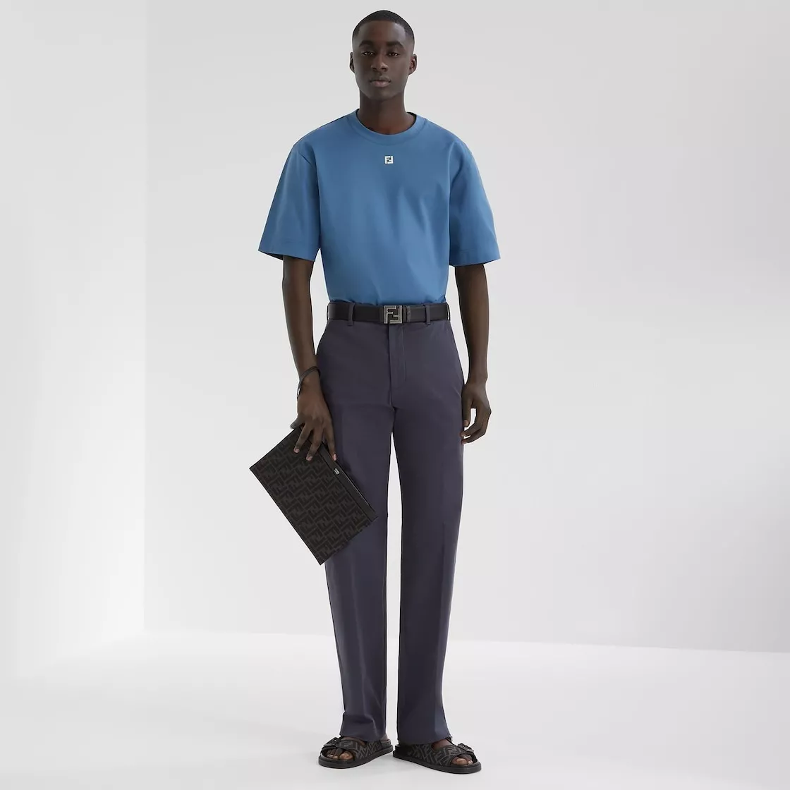 What truly sets these pants apart is the palladium-finish metal micro FF logo at the waist. This signature detail offers a nod to Fendi’s iconic style, adding a touch of luxury without overpowering the clean, modern look. Whether you’re attending a formal event or dressing up for a night out, these pants bring a polished finish to any outfit.