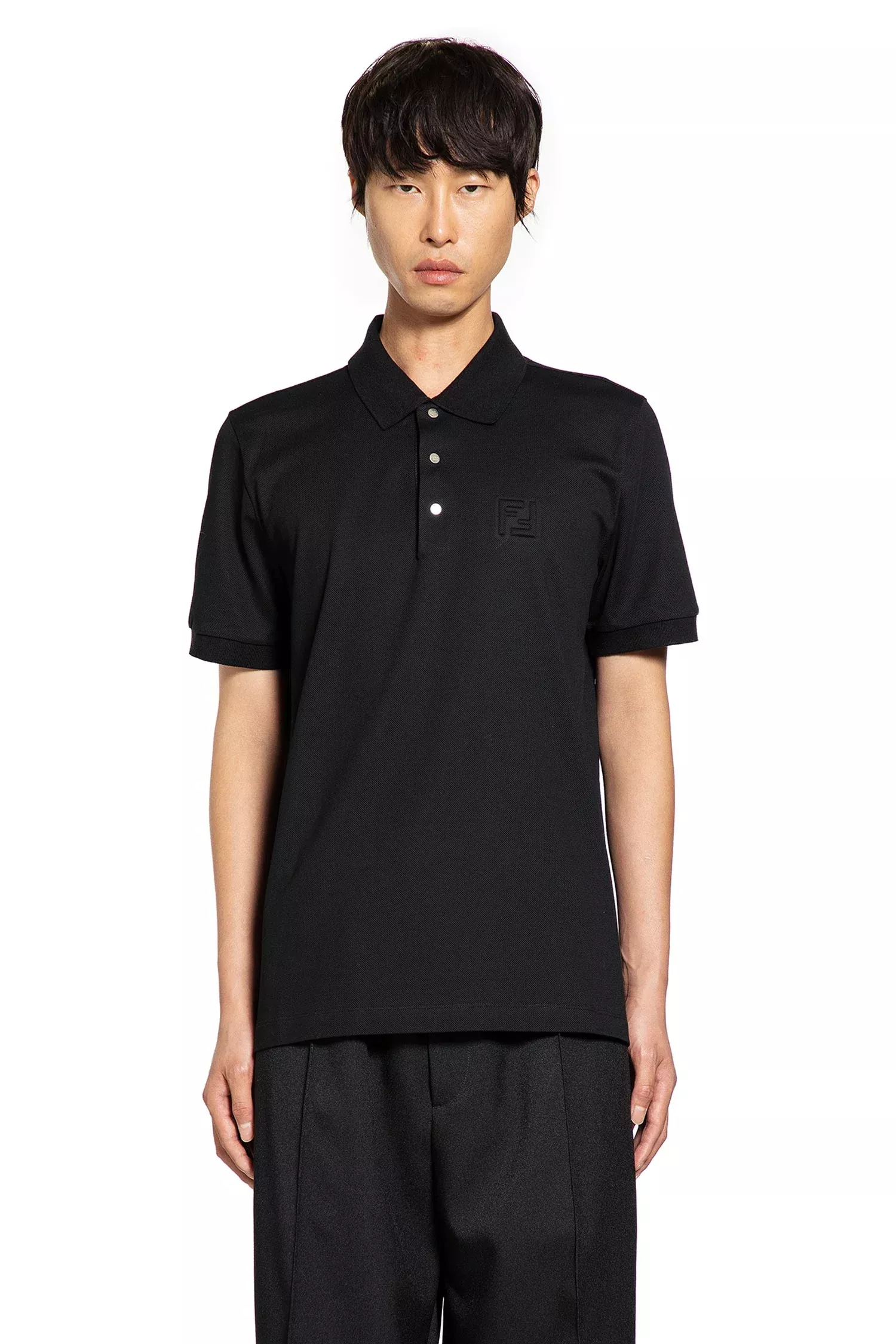 Fendi Embossed-Logo Stretch Cotton Piqué Polo Shirt – Black