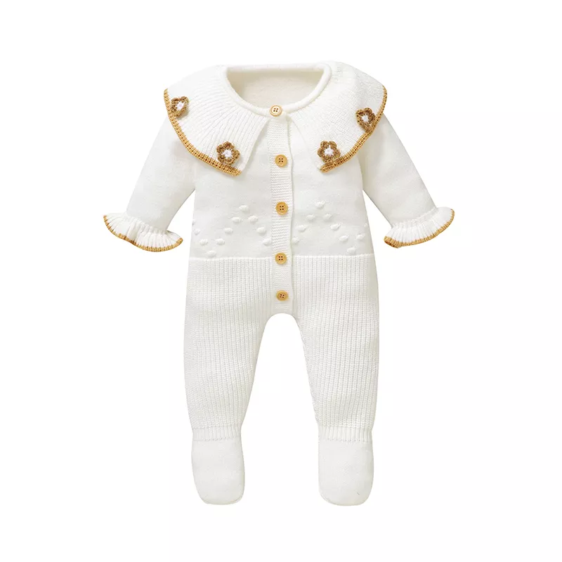 Floral Knit Baby Romper – Long Sleeve Warm Jumpsuit for Girls, 0-9 Months